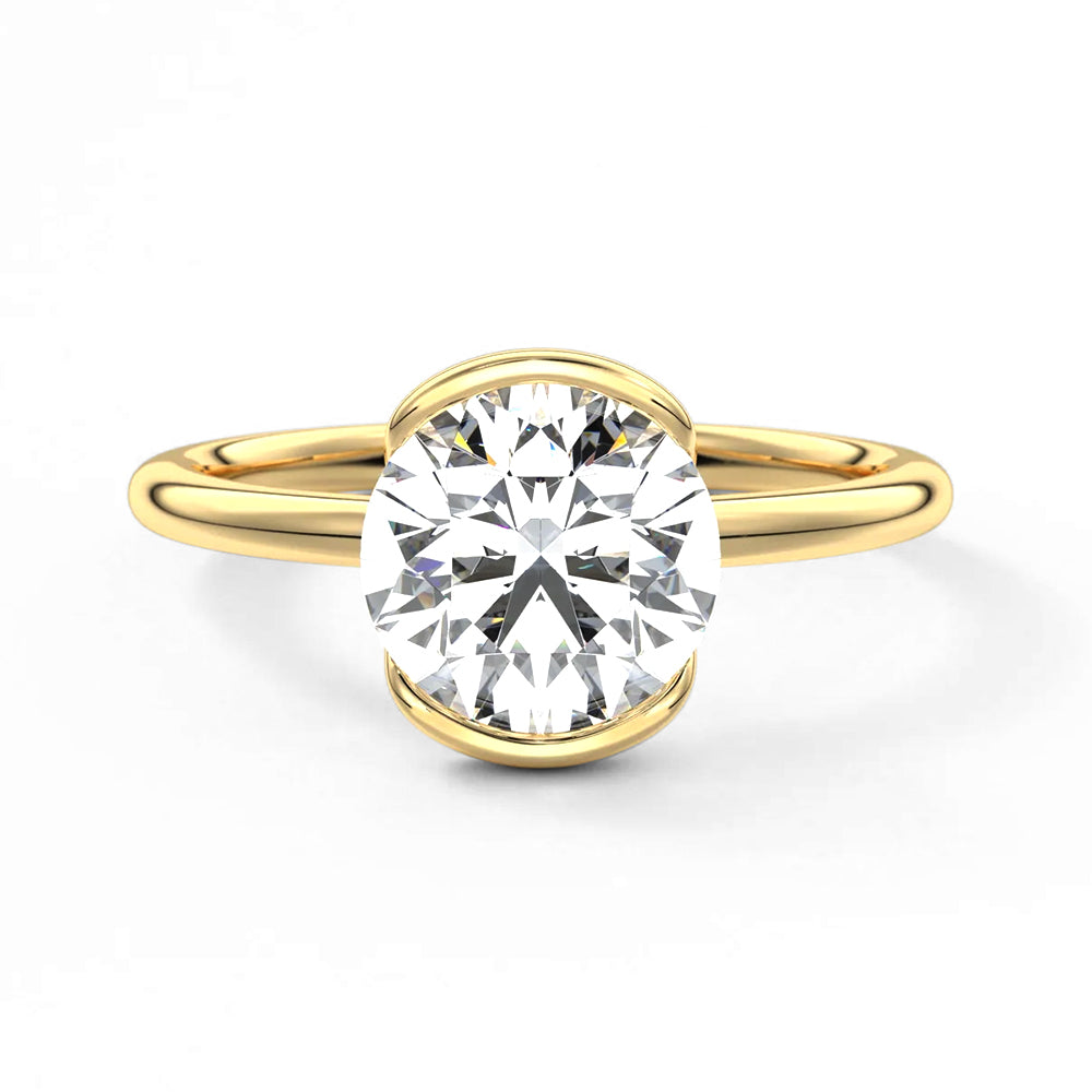 Half Bezel Moissanite Round Cut Engagement Ring