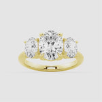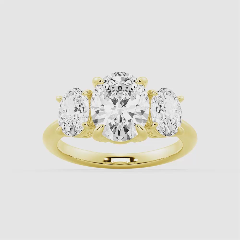 The three-stone design of this ring symbolizes the past, present, and future of your relationship, making it the perfect choice for a romantic proposal or anniversary gift. The oval shape of the stones adds a unique touch of elegance and sophistication, making it stand out from other traditional engagement rings.