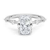 Oval Cut Moissanite Ring with Diamond Spaced Band and Hidden Halo - MSBLUE JEWELRY