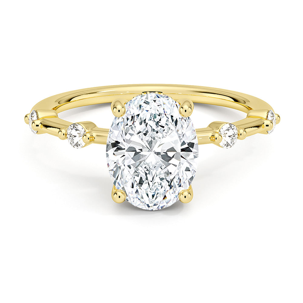Oval Cut Moissanite Ring with Diamond Spaced Band and Hidden Halo