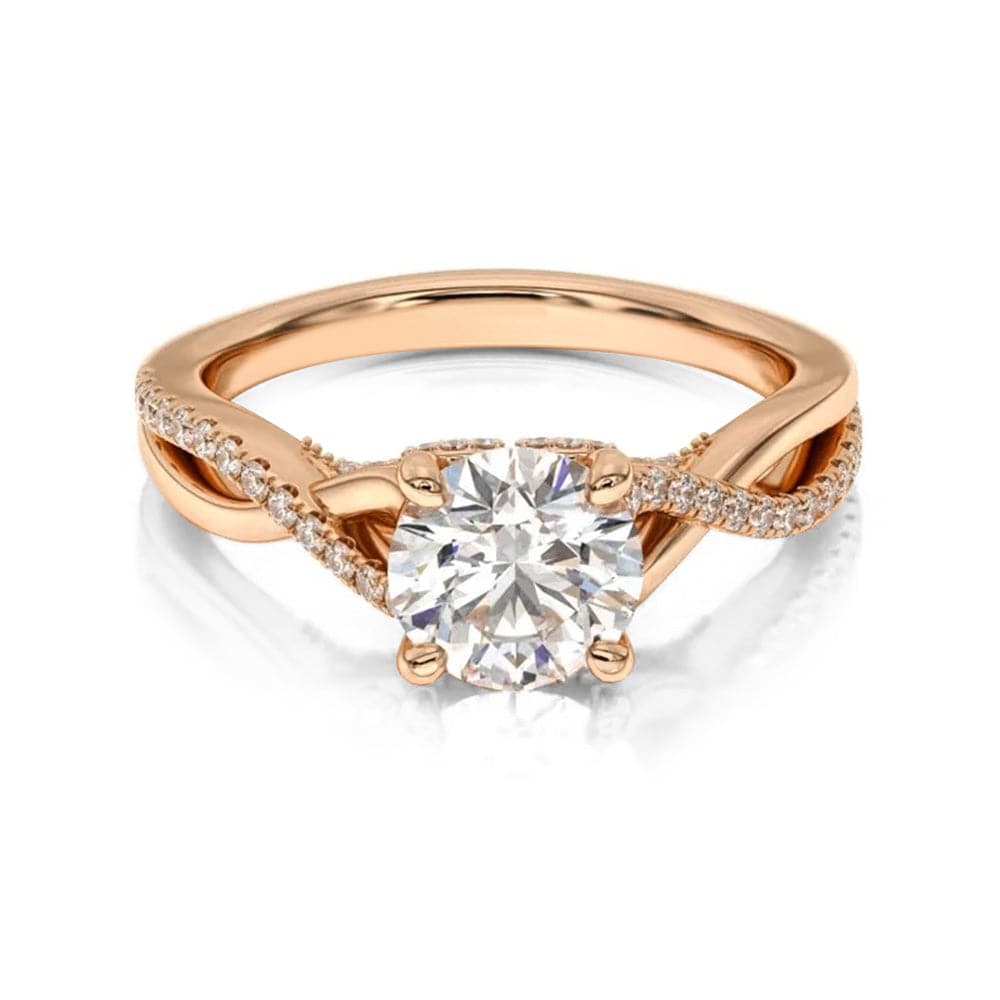 Round Moissanite Twisted Band Engagement Ring with Hidden Accents - MSBLUE JEWELRY
