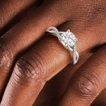 Celebrate your love with the enchanting brilliance of this Round Moissanite Twisted Band Engagement Ring. At its heart lies a dazzling round-cut Moissanite, expertly set to maximize its fire and brilliance. The elegantly intertwined band, adorned with shimmering pavé stones, represents the beautiful journey of two souls coming together.