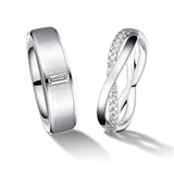 Satin Finish Emerald Cut and Infinity Moissanite Eternity Couple's Ring Set - MSBLUE Jewelry