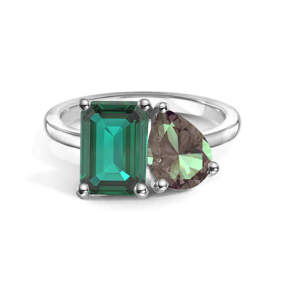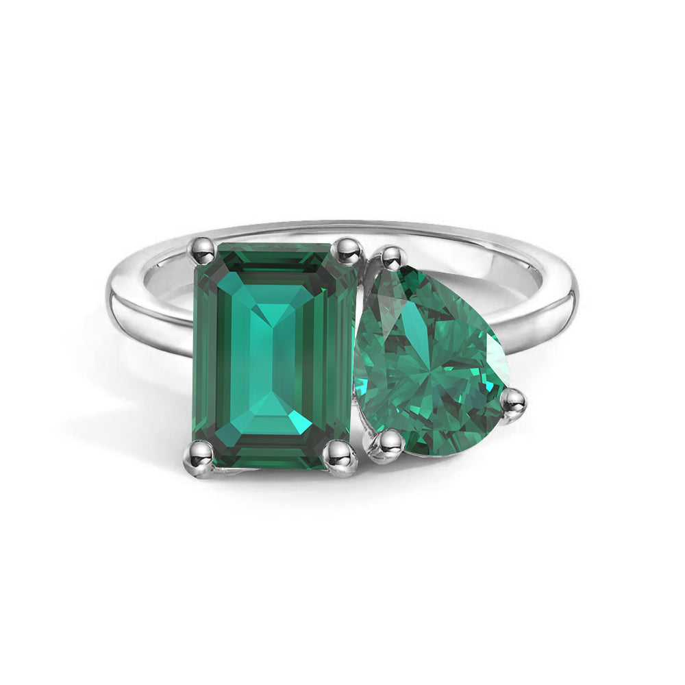 Toi et Moi Personalized Emerald Birthstone Anniversary Ring