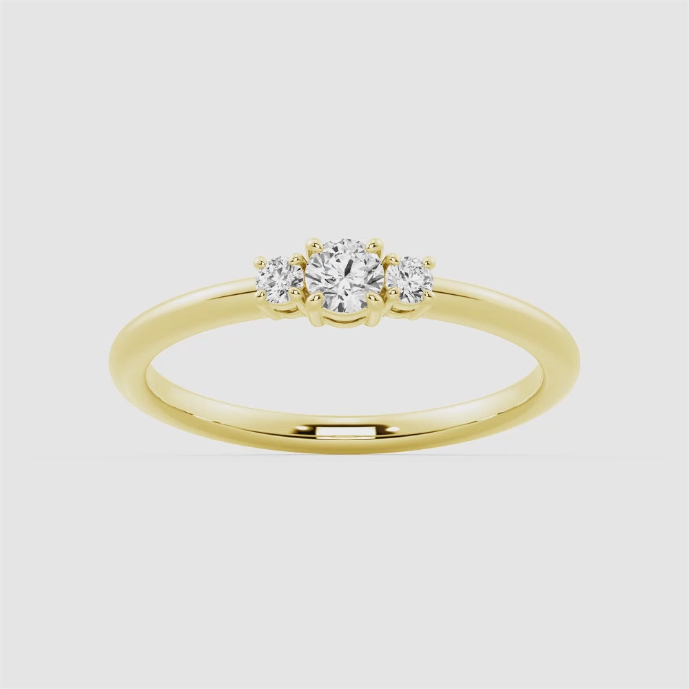 The True Love Lab Grown Diamond Three-Stone Promise Ring beautifully symbolizes the past, present, and future of your love story. Featuring three brilliant lab-grown diamonds, each carefully set to maximize their sparkle, this ring represents the enduring commitment you share. The timeless three-stone design highlights the unique brilliance of each diamond, making it a meaningful choice for couples who wish to express their love in a sustainable and ethical way.