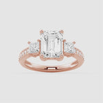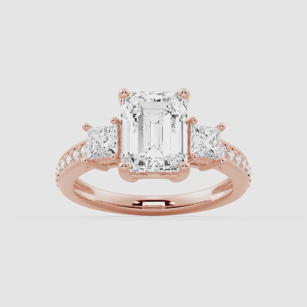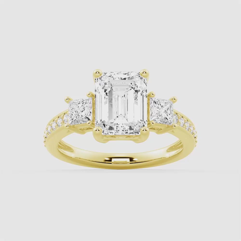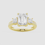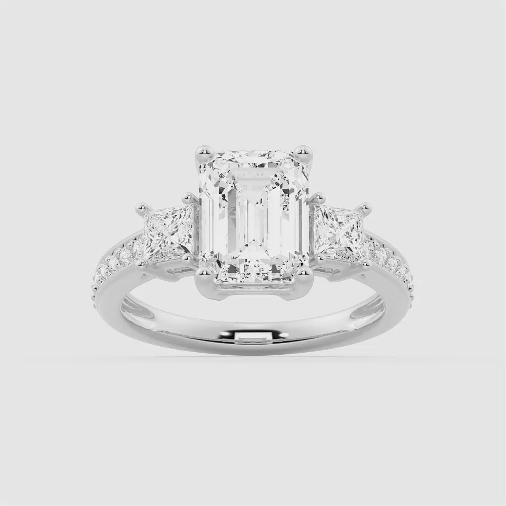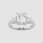 Emerald Shaped Three Stone Engagement Ring - MSBLUE Jewelry