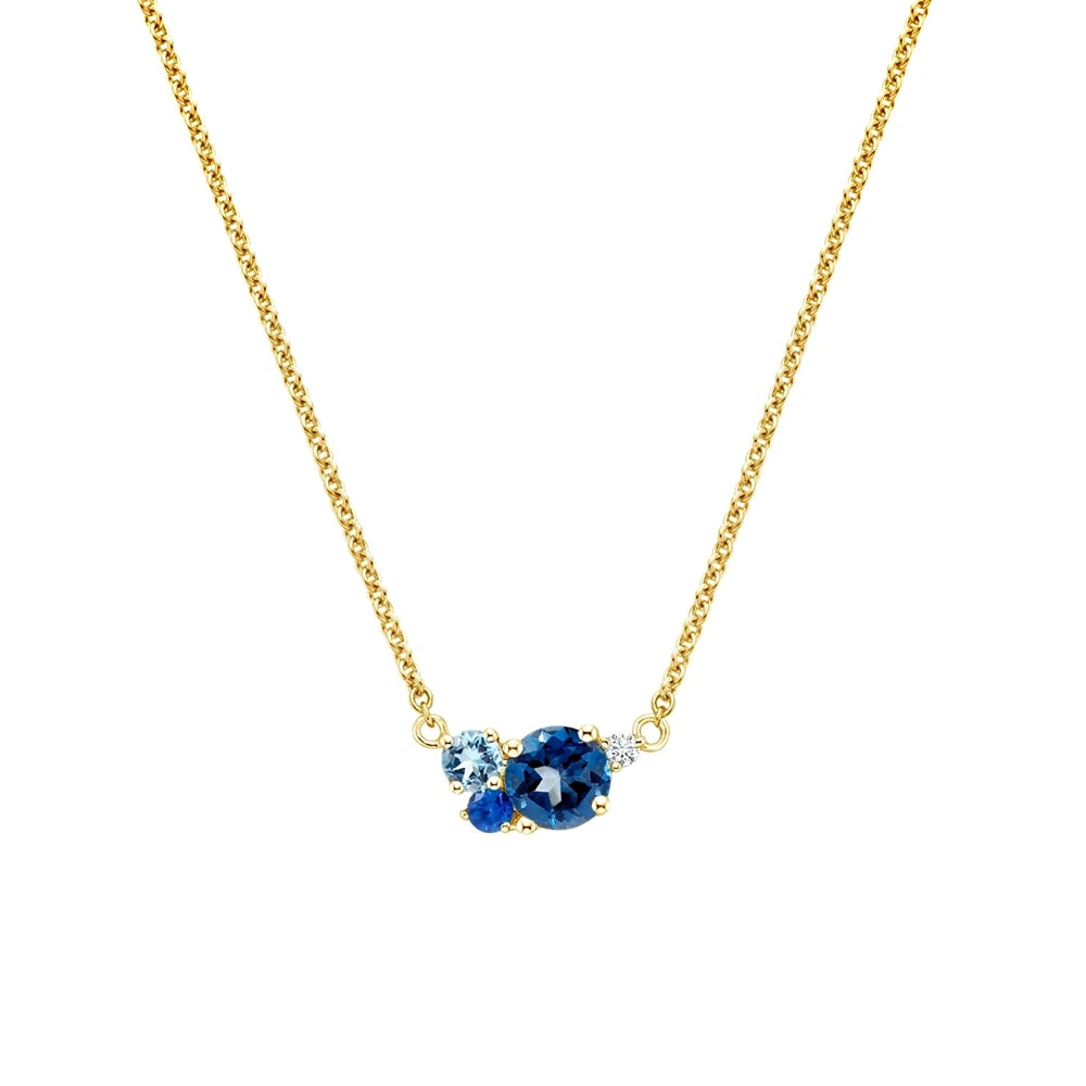 Inspired by the serene beauty of the ocean, the Ocean Breeze Cluster Earrings feature a stunning combination of blue topaz, sapphire, aquamarine, and diamond. Each gemstone, with its unique shade of blue, mirrors the ever-changing hues of the sea—from the deep mystery of sapphire to the crystal-clear brilliance of aquamarine.