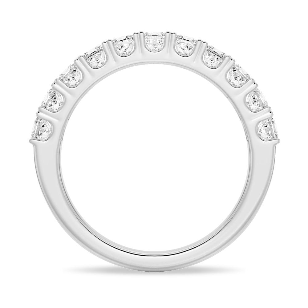 Available in solid S925 Silver/10K Gold/14k Gold/Platinum, and three colors, white gold, yellow gold, and rose gold, this band features 11 princess cut Moissanite stones that are channel-set to create a seamless, continuous sparkle. The 1.65 carat total weight of the Moissanite stones is impressive and sure to catch the eye of anyone who sees it. The classic yet modern design of this half eternity band makes it a perfect choice for a wedding band or anniversary gift.
