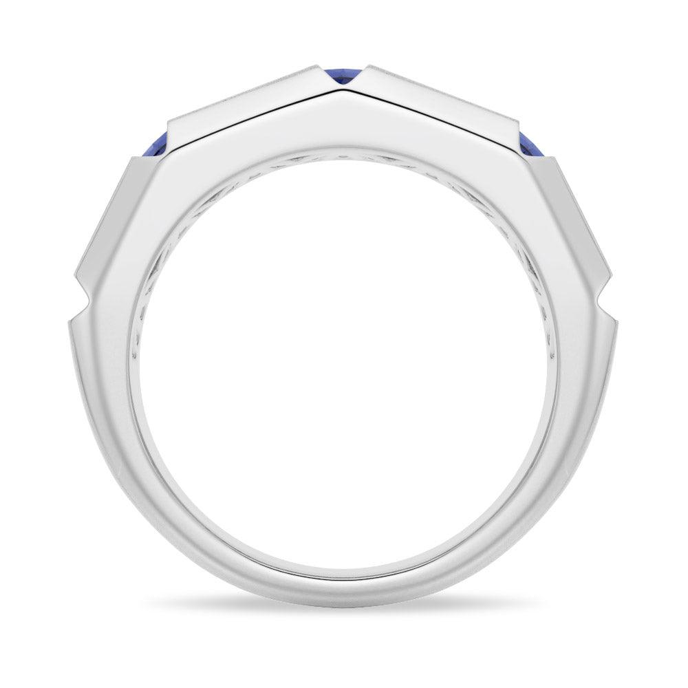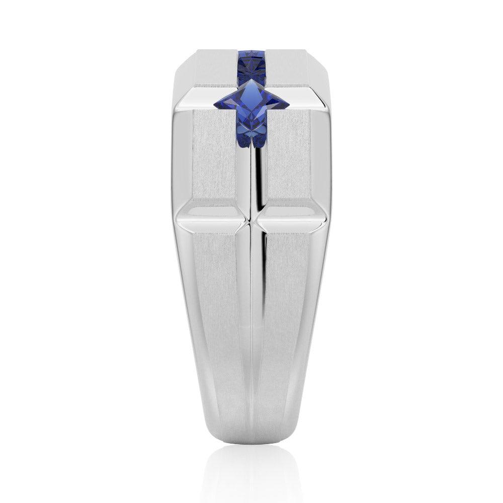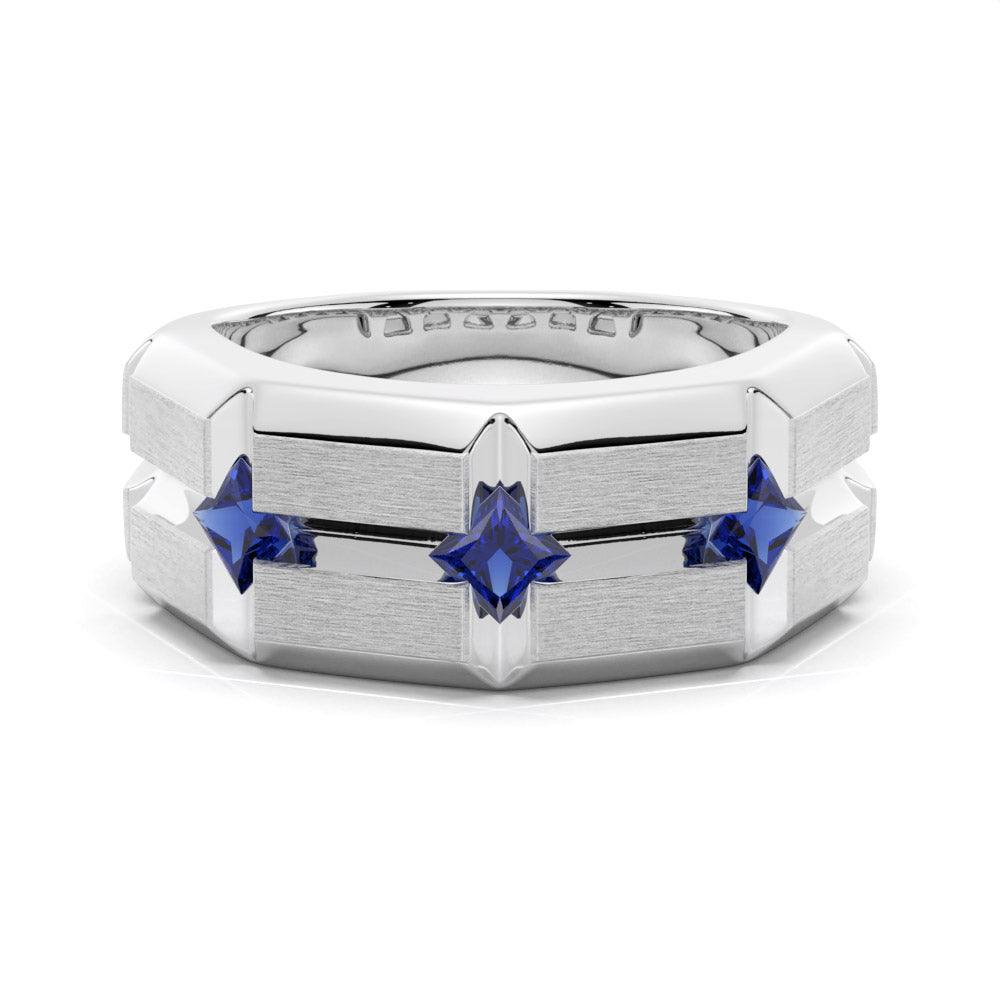 With its princess-cut sapphire gemstones and brushed finish, this band exudes a contemporary and sophisticated allure. Available in a range of premium materials, including S925 Silver, 10K Gold, 14K Gold, or Platinum, and your choice of White, Yellow, or Rose Gold, you can customize this band to suit your personal style. Experience exceptional craftsmanship and timeless elegance with this remarkable men's wedding band, a symbol of enduring love and impeccable taste.