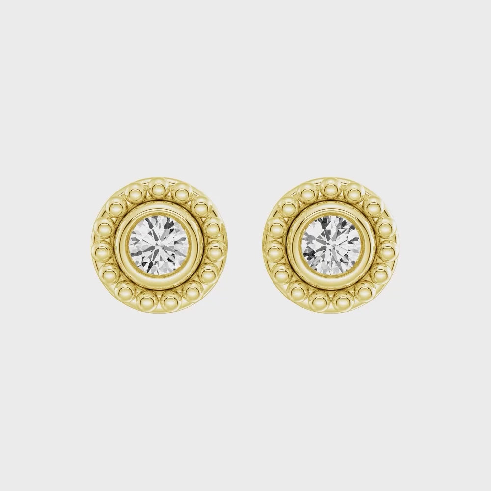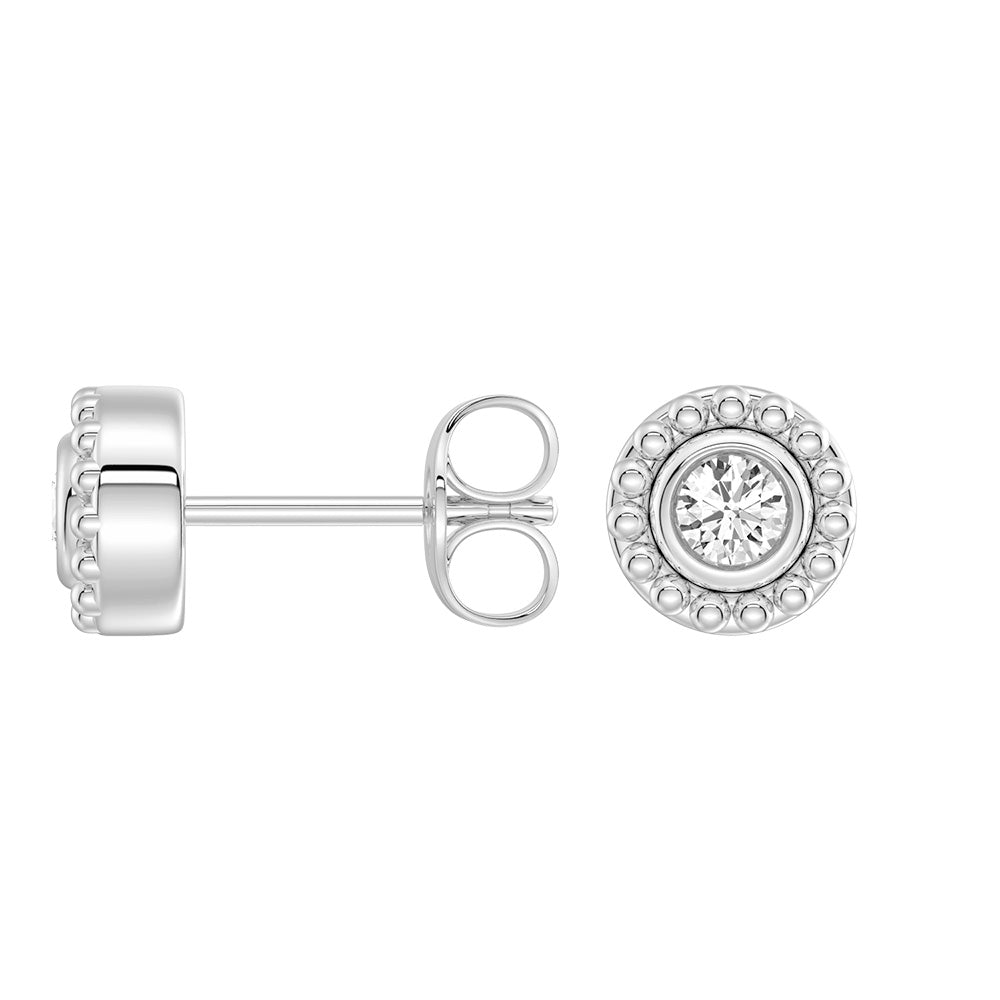 Elevate your everyday look with versatility and brilliance. These Convertible 2-in-1 Stud Earrings feature sparkling lab grown diamond set in a sleek bezel design, offering timeless elegance with a modern twist. The removable beaded jacket backing adds dimension and texture, allowing you to switch effortlessly between two looks—a minimalist solitaire stud or a statement piece with a beaded halo.