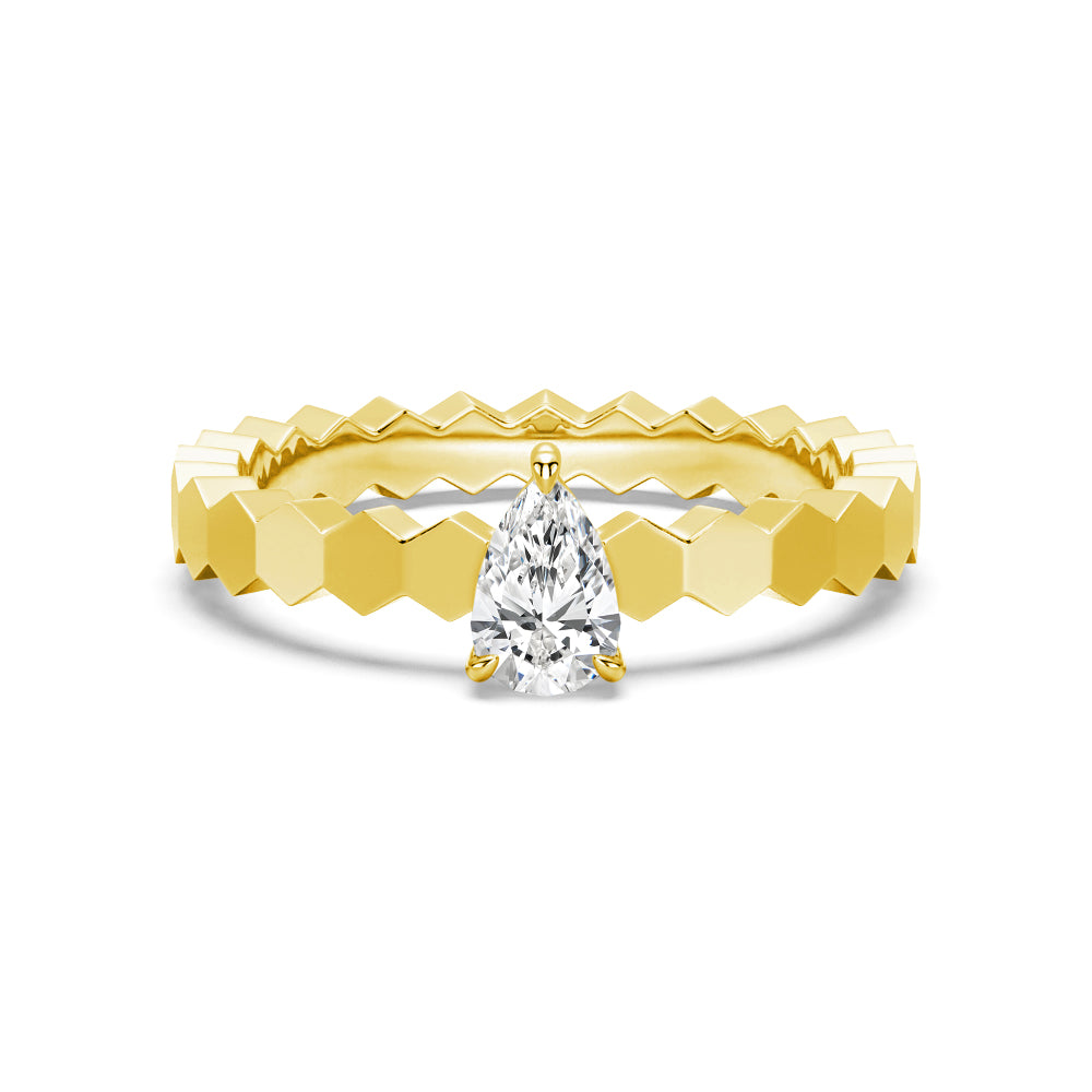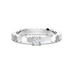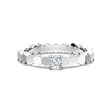 A geometric ode to forever, this promise ring centers a dazzling princess-cut lab-grown diamond, its sharp angles mirroring the interlocking hexagons of the rhodium-finished band. Sustainably crafted with zero-emission diamonds (EF color, VVS-VS clarity), the design balances bold modernity and timeless symbolism—hexagons for unbroken commitment, princess cuts for enduring brilliance. Choose lustrous white gold plating or warm 18K yellow gold vermeil, each offering hypoallergenic durability. A love story told through clean lines and ethical luxury.