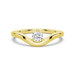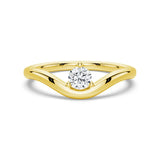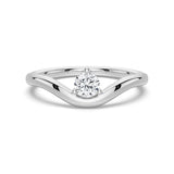 The Modern Curved Band Solitaire Promise Ring embodies sleek simplicity and heartfelt meaning. Its gently curved band creates a soft, flowing silhouette that gracefully wraps around the finger, representing the continuous journey of love and commitment.