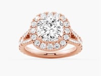 Cushion Cut Split Shank Moissanite Halo Engagement Ring