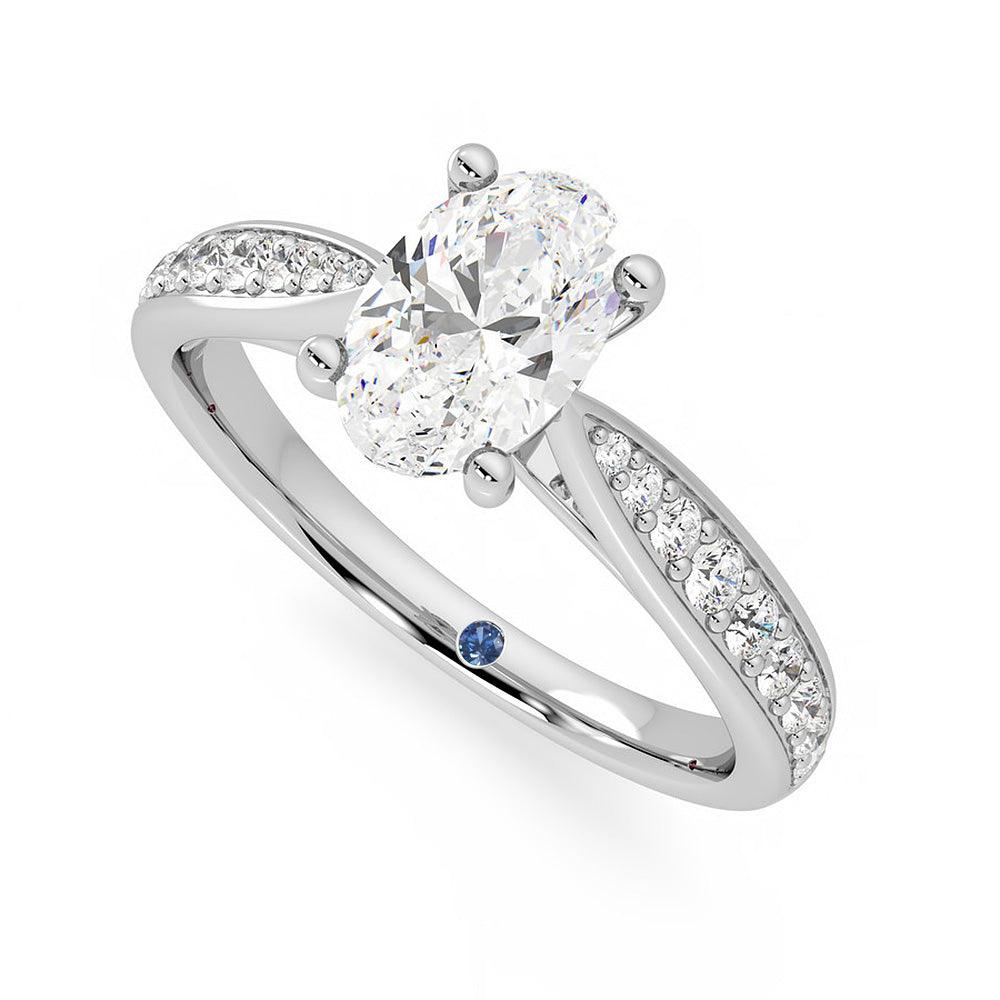 Oval Cut Moissanite Engagement Ring with Pavé Band and Hidden Anniversary Stone Accent