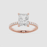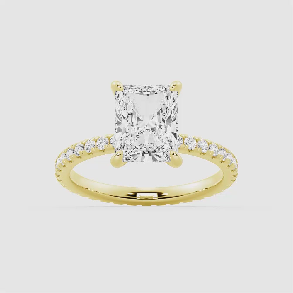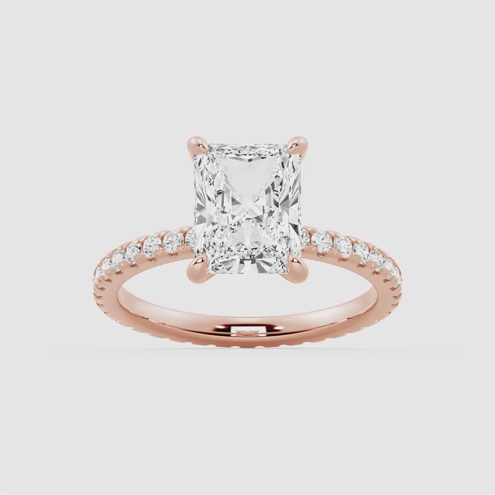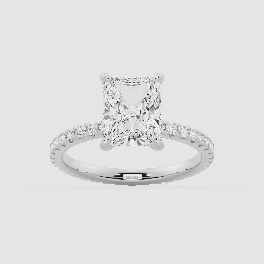 Radiant Cut Moissanite Engagement Ring With Eternity Pave Shank