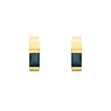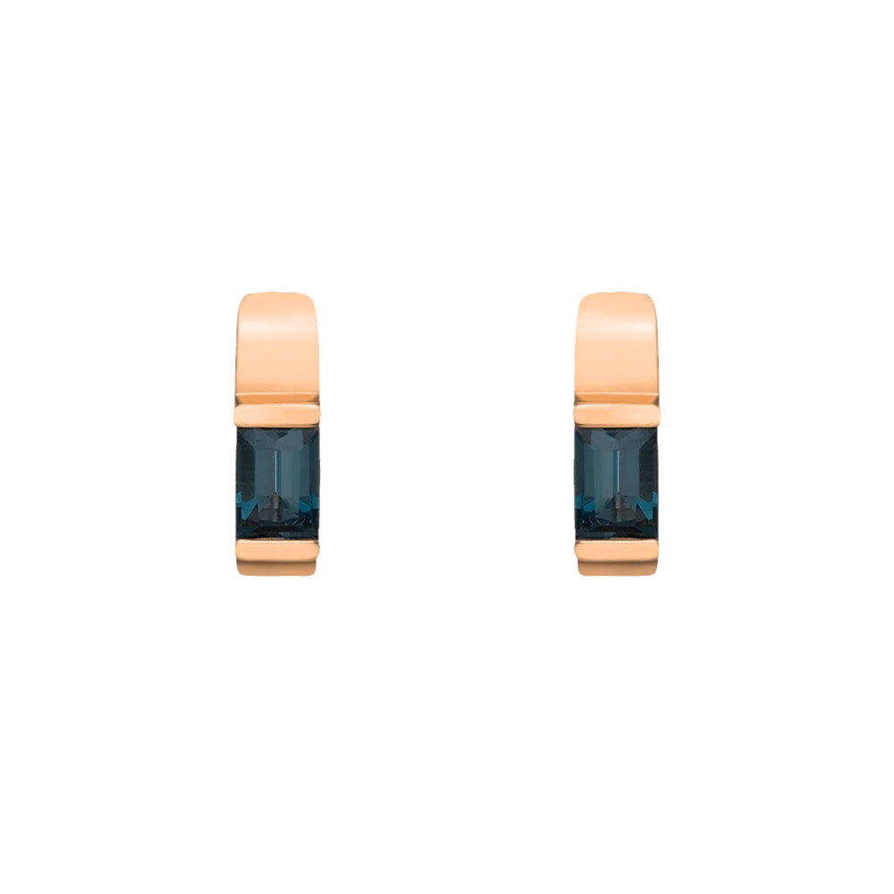 These hoops feature rectangular-cut gemstones, expertly set within a beveled edge gallery that adds architectural depth and sophistication. The rich blue tone of the topaz evokes calm seas and twilight skies, making these earrings both bold and elegant. The beveled edge setting highlights the clean lines of the stones while providing durability and refined craftsmanship.