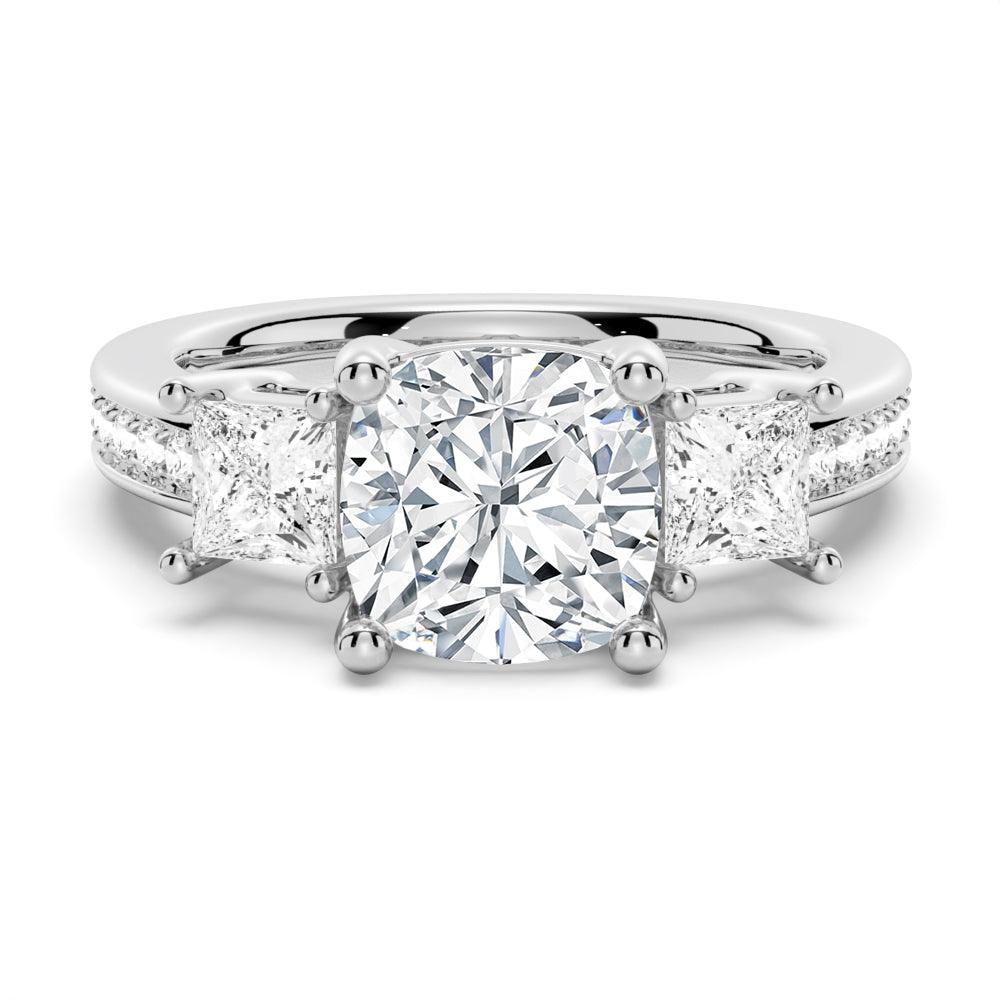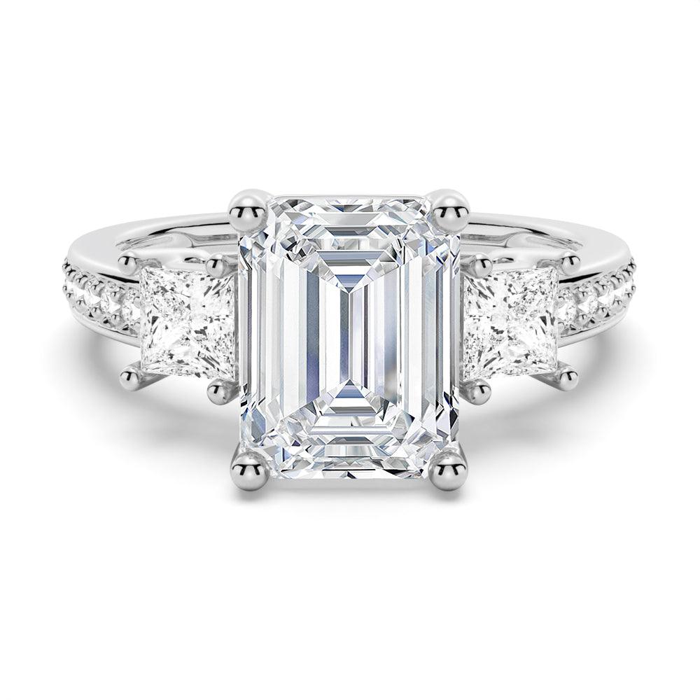 Accented Three Stone Princess Cut Engagement Ring - MSBLUE Jewelry