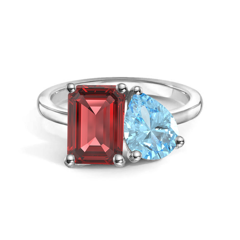 Toi et Moi Personalized Ruby Birthstone Anniversary Ring - MSBLUE Jewelry