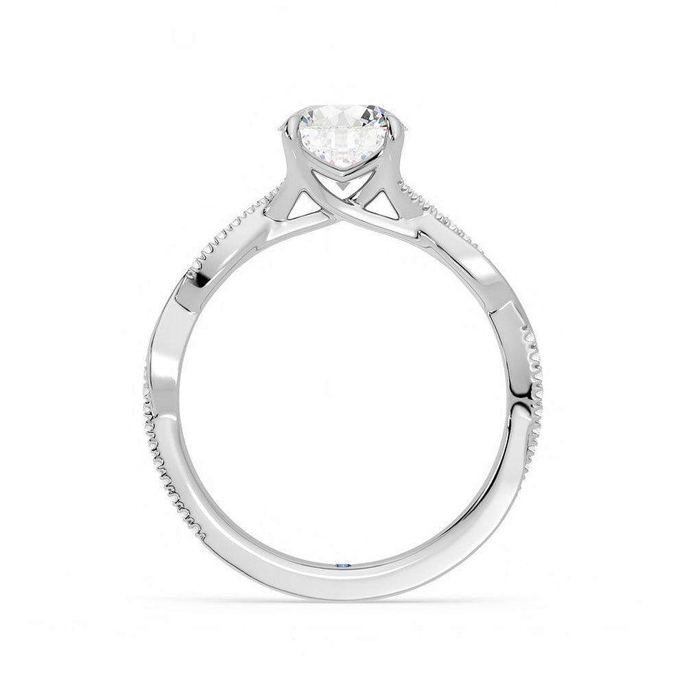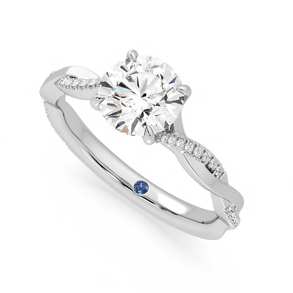 Twisted Band Round Moissanite Engagement Ring with Hidden Anniversary Stone Accent - MSBLUE Jewelry