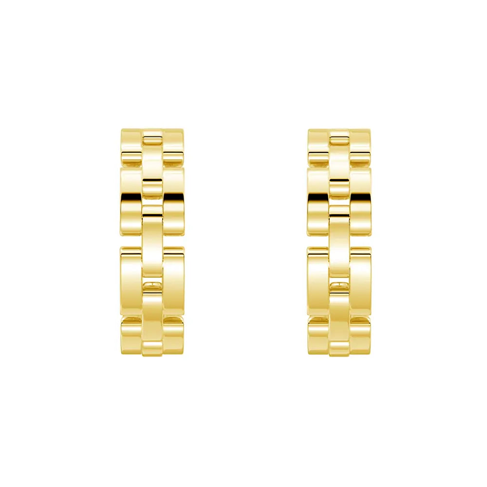 The Watch Strap Motif Textured Link Hoop Earrings blend classic elegance with bold, modern texture inspired by the intricate patterns of luxury watch straps. These hoops feature interlinked textured segments that create a dynamic, tactile design—offering a sophisticated statement that’s both timeless and edgy.