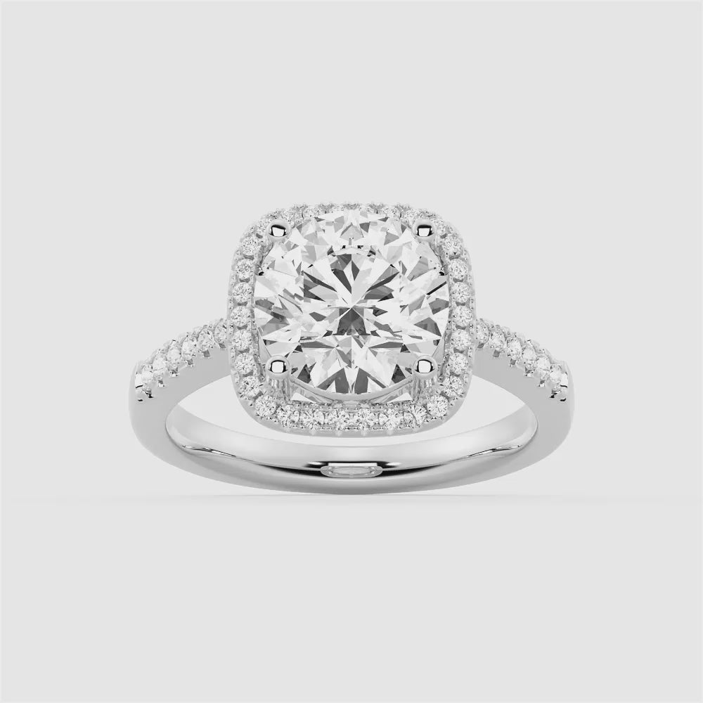 Four Prongs Pavé Halo Moissanite Engagement Ring