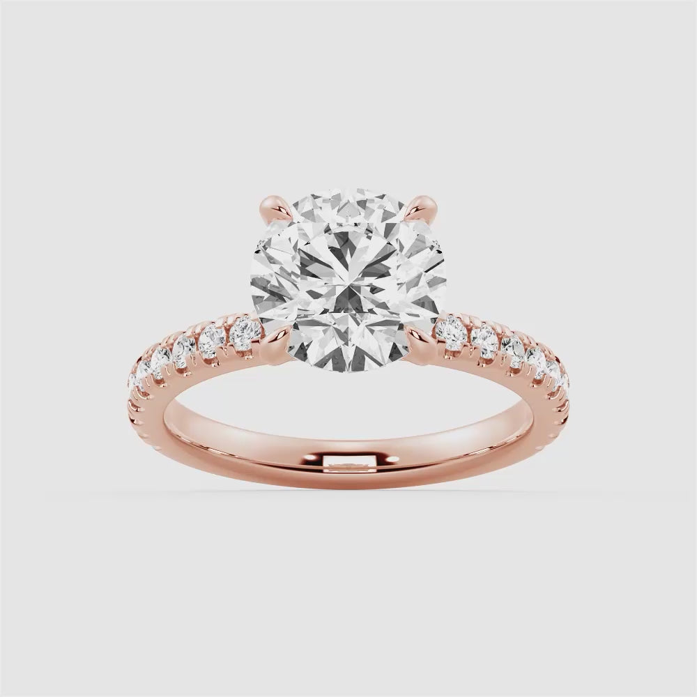 Pavé Band Round Moissanite Engagement Ring With Hidden Halo
