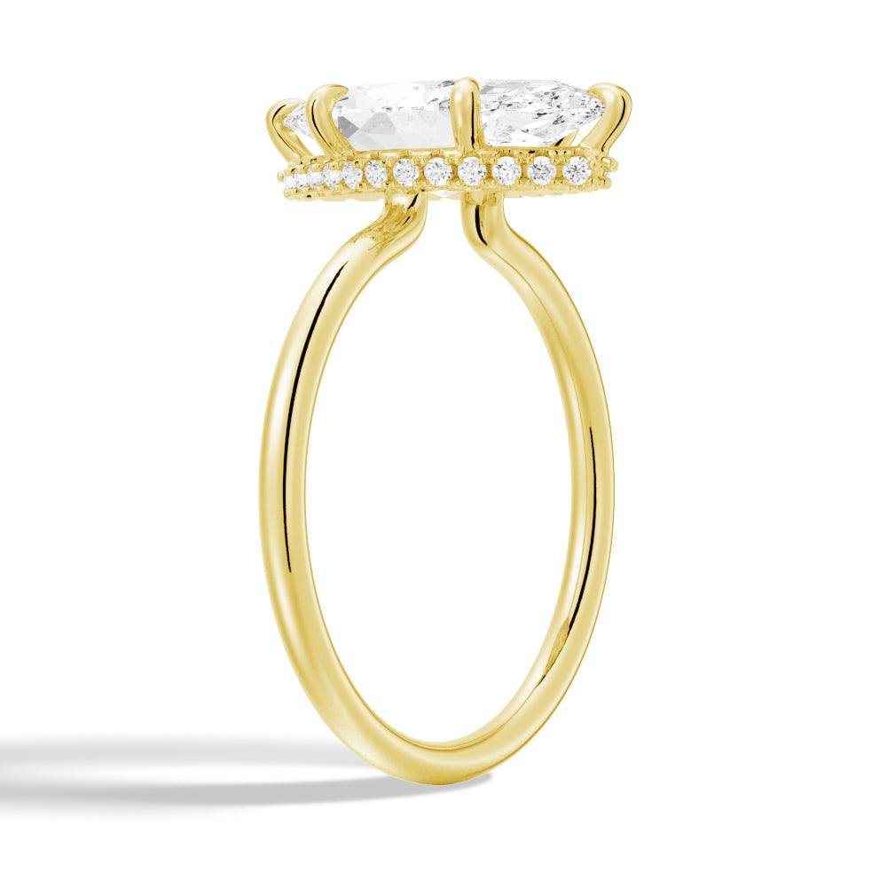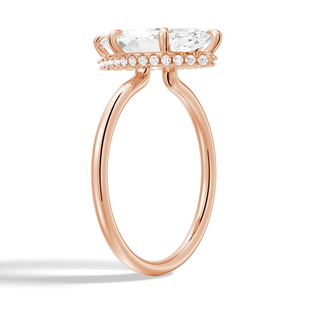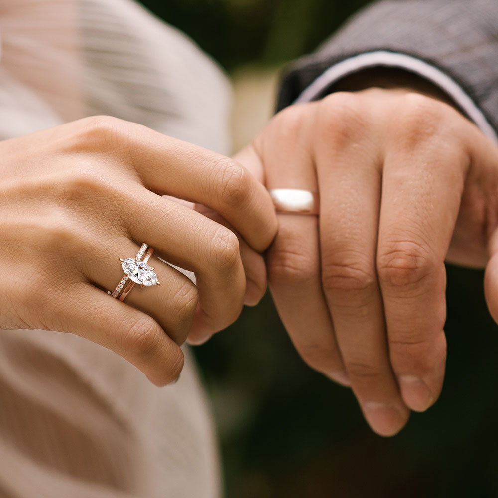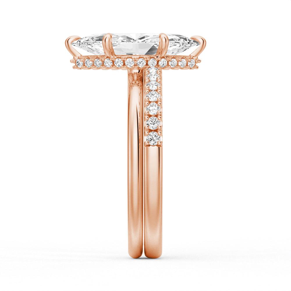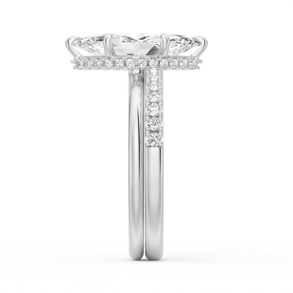 Micropavé Oval Hidden Halo Moissanite Couple's Ring Set with Men's Wedding Band - MSBLUE JEWELRY