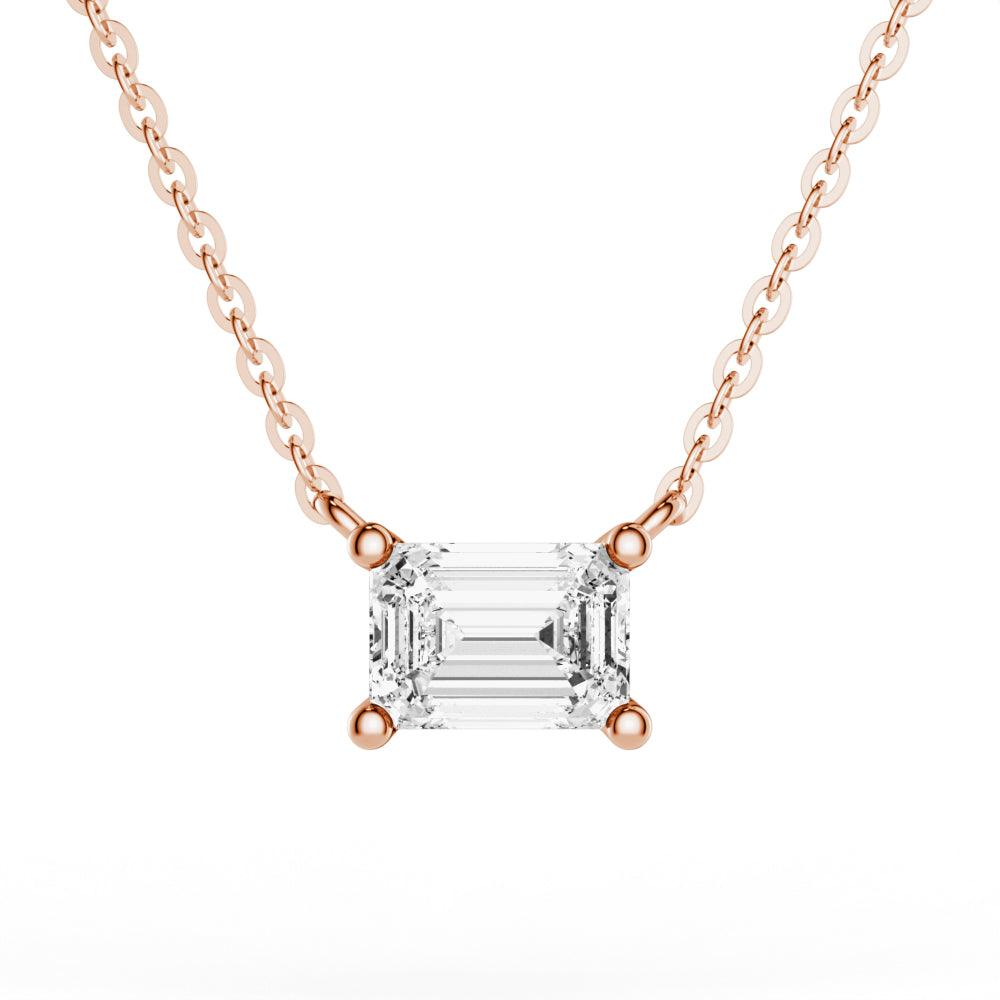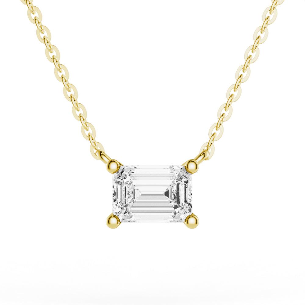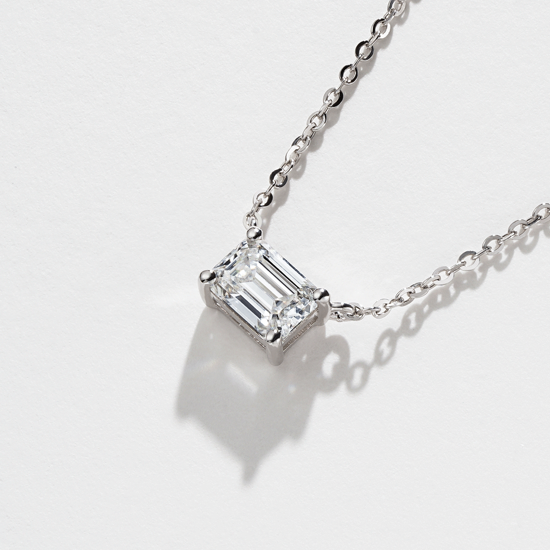 East-West Emerald Cut Moissanite Solitaire Necklace - MSBLUE Jewelry