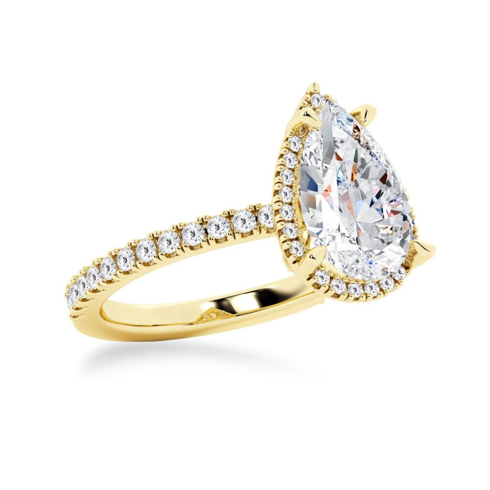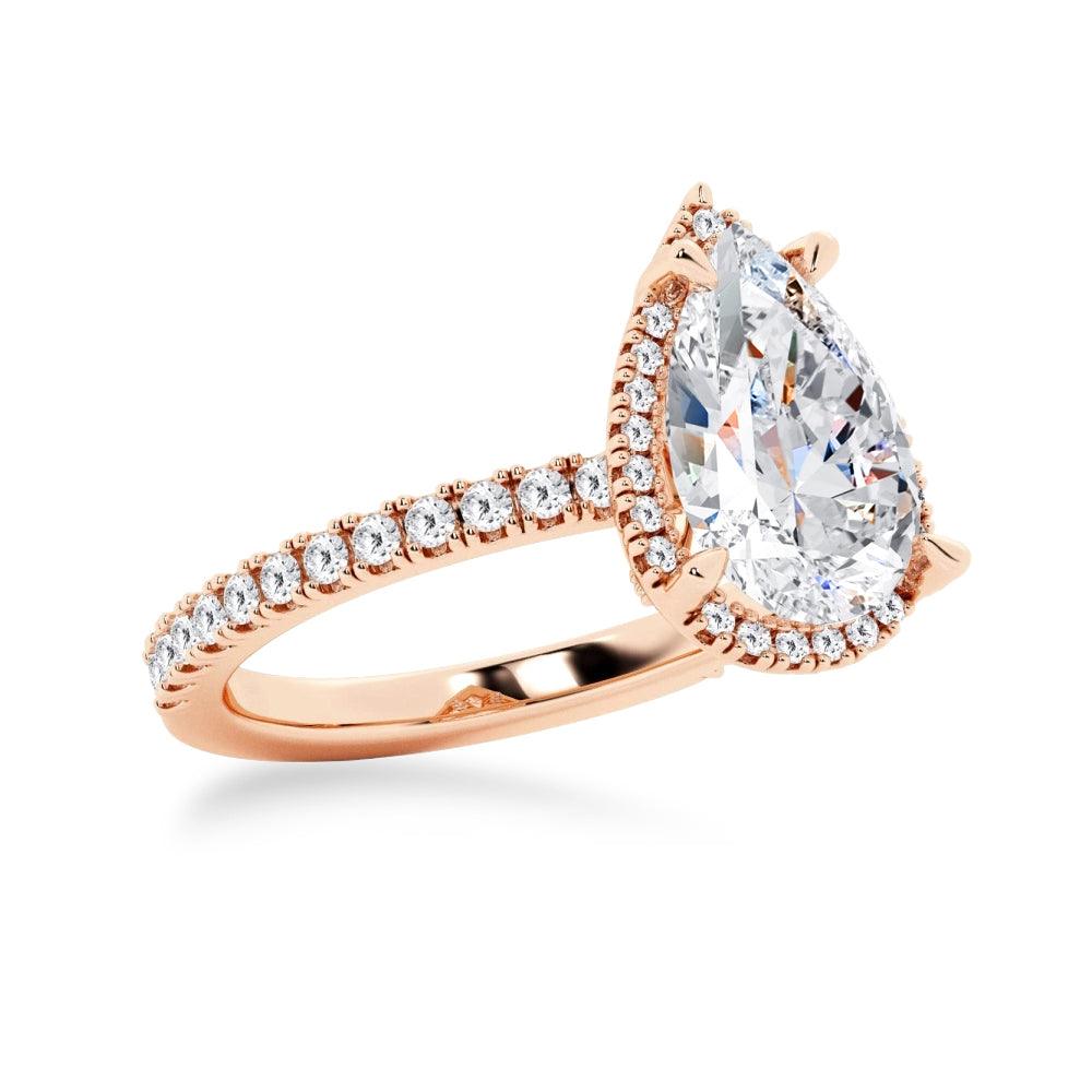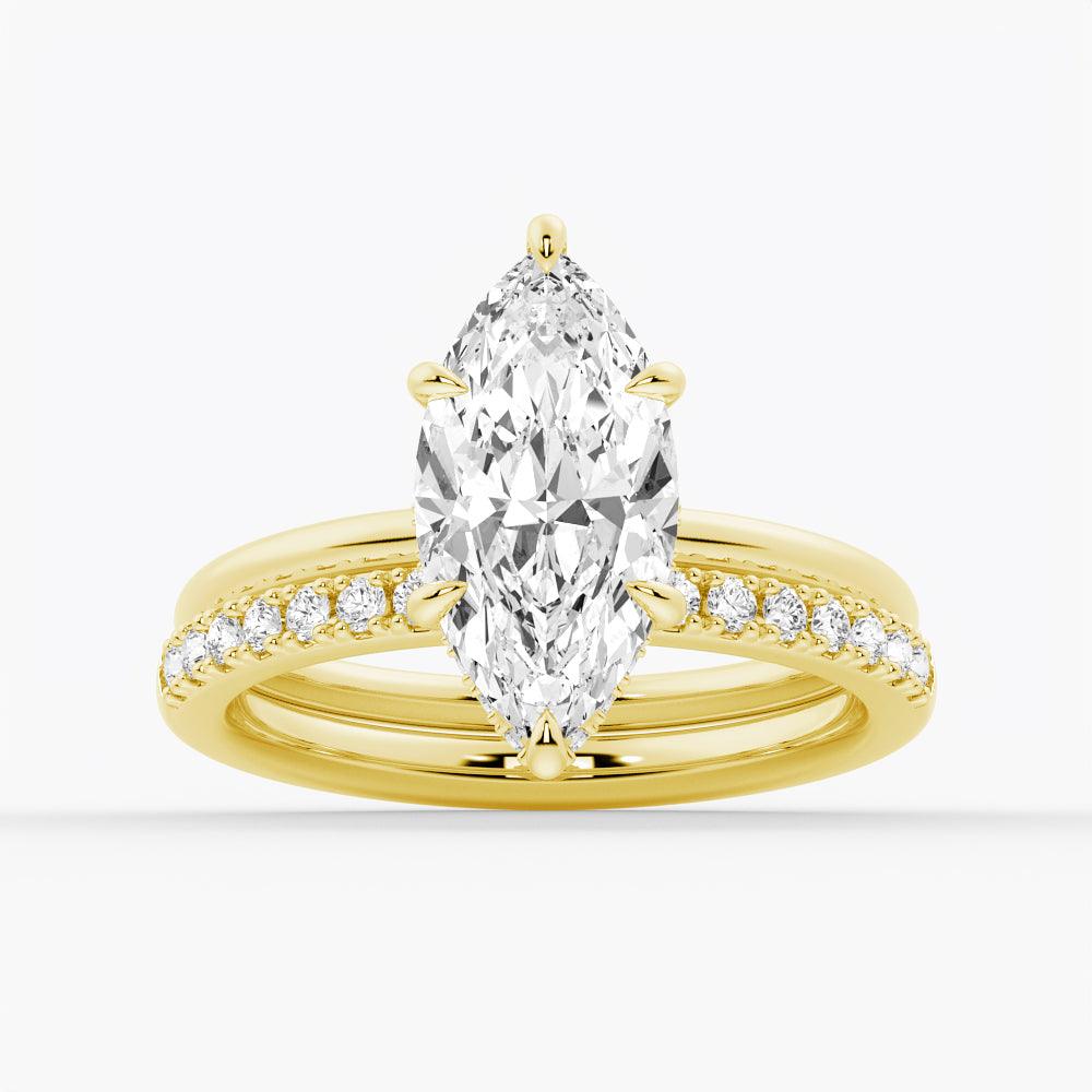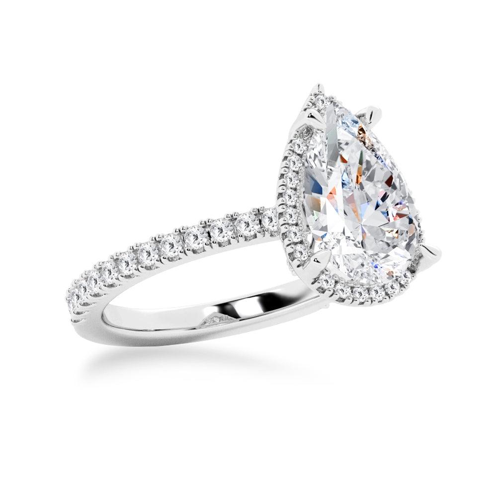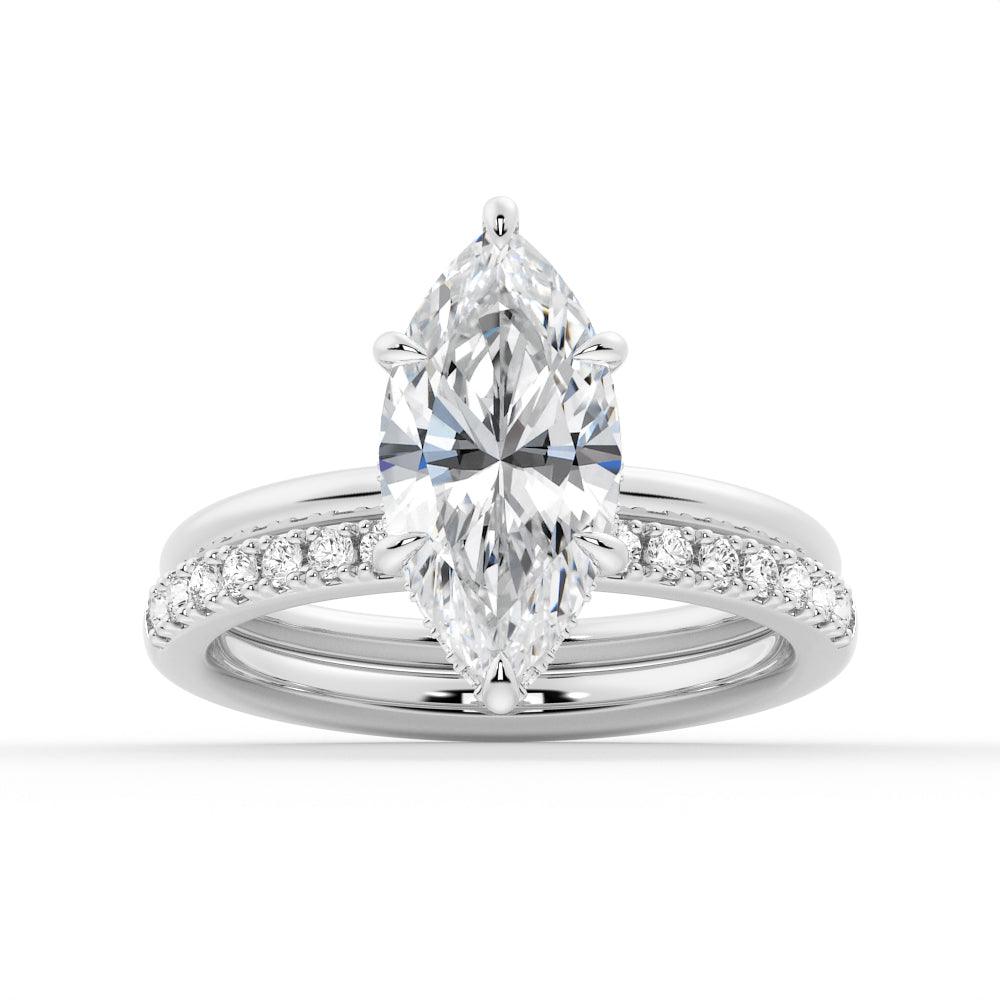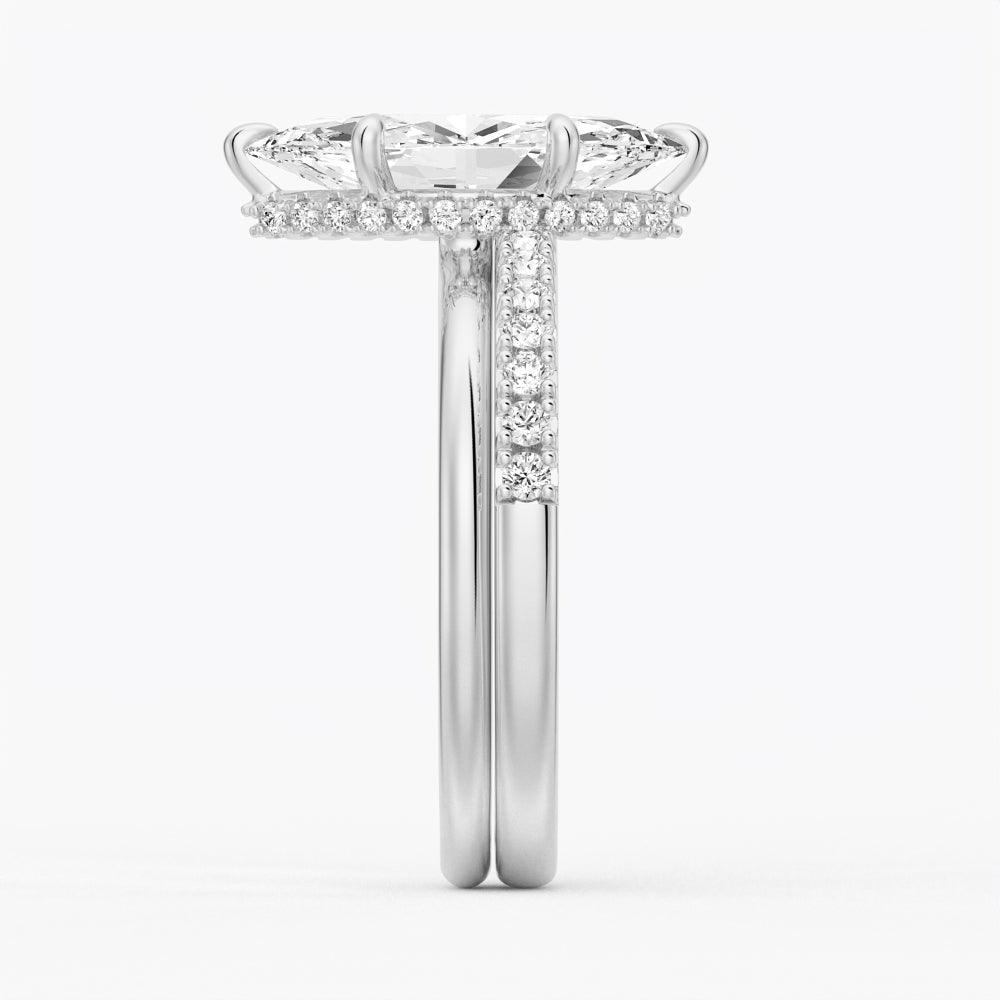 Pear-Shaped Pavé Band Moissanite With Hidden Halo Bridal Set with Men's Wedding Band - MSBLUE Jewelry