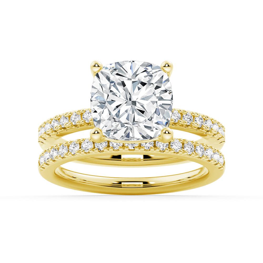 Cushion Cut Split Shank Moissanite Ring Set with Matching Wedding Band