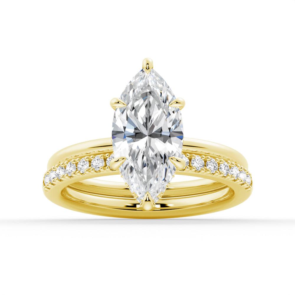 Pear Shaped Split-Shank Moissanite Bridal Set with Men's Wedding Band - MSBLUE Jewelry