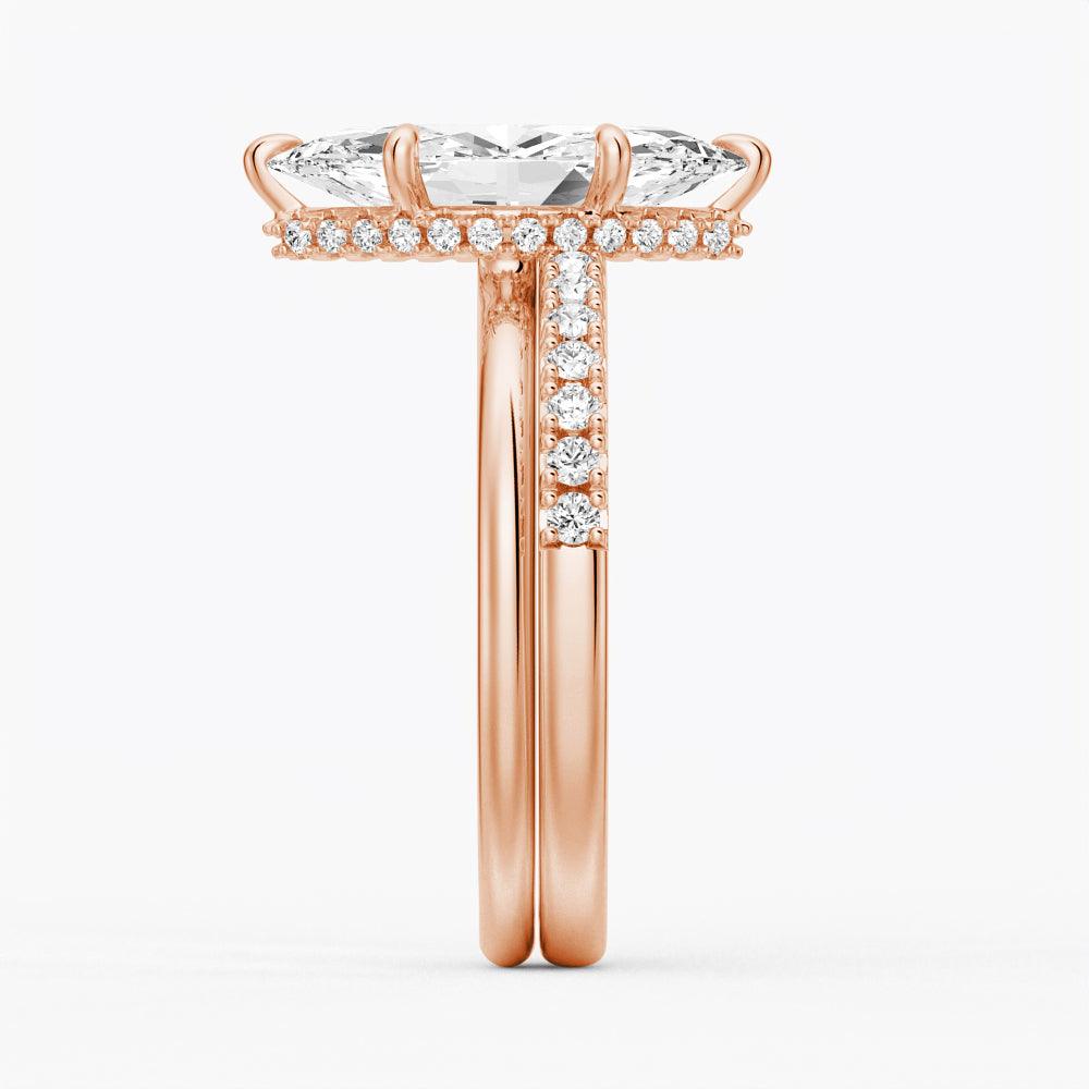 Micropavé Oval Hidden Halo Moissanite Couple's Ring Set with Men's Wedding Band