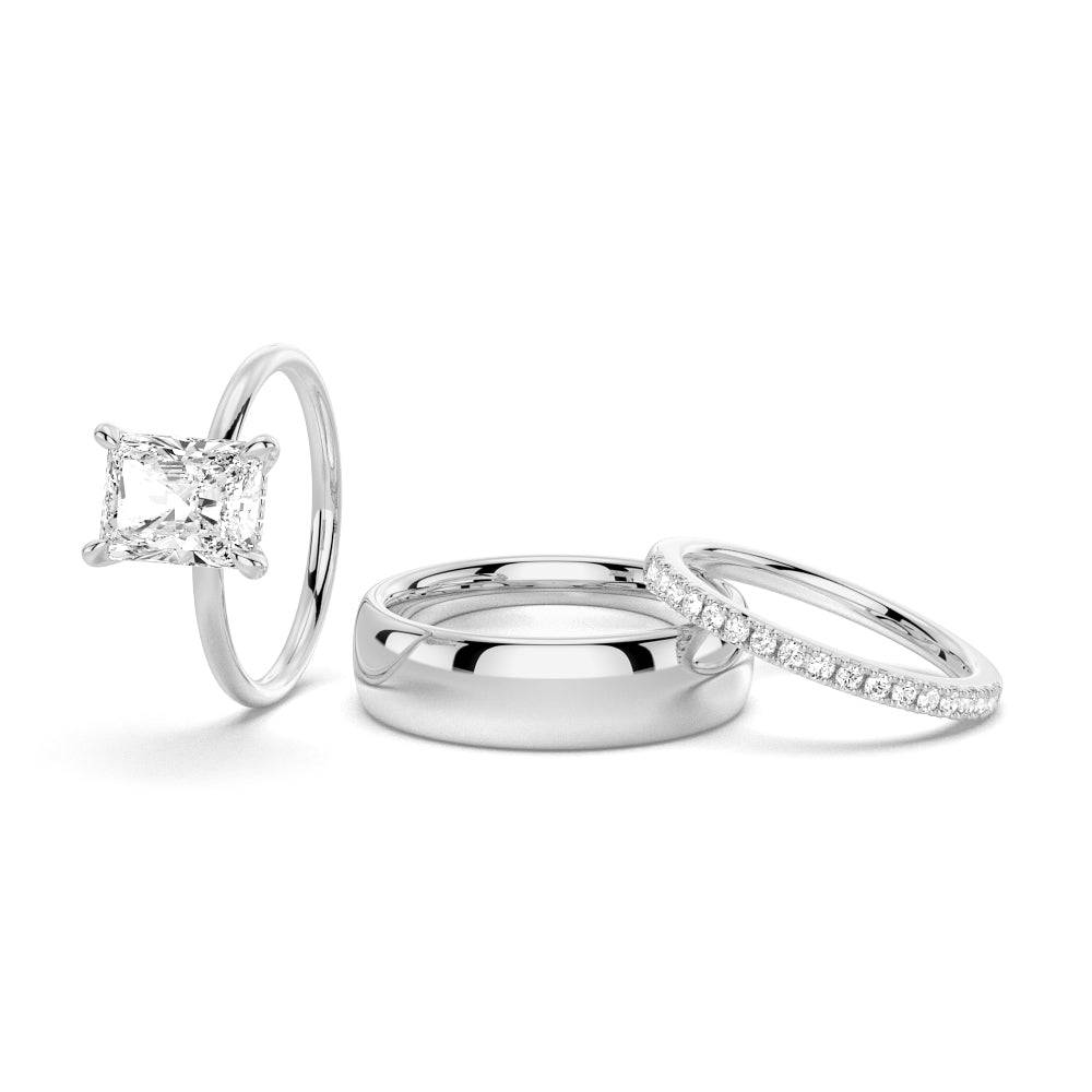Solitaire Radiant Cut Moissanite Ring Set with Matching Wedding Band