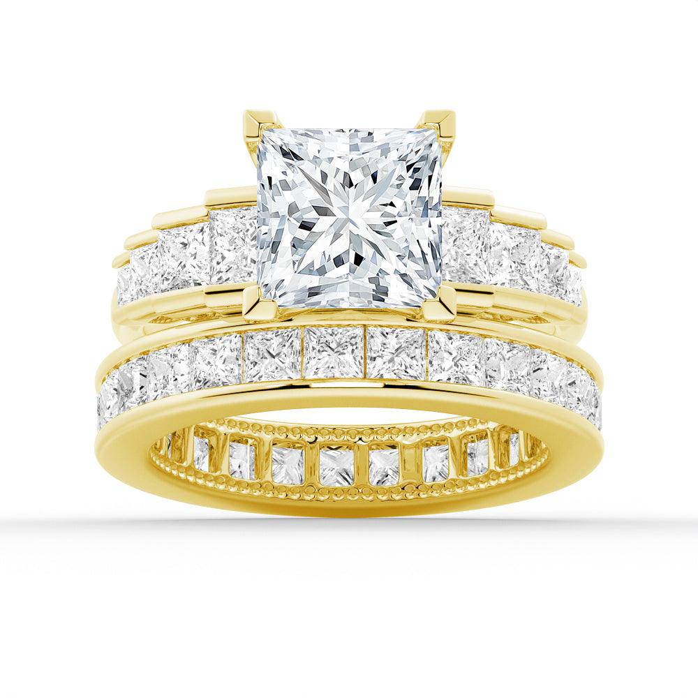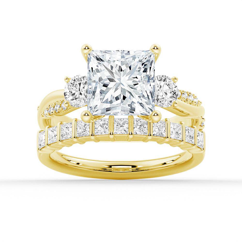 Princess Cut Split Shank Moissanite Ring Set with Matching Wedding Band