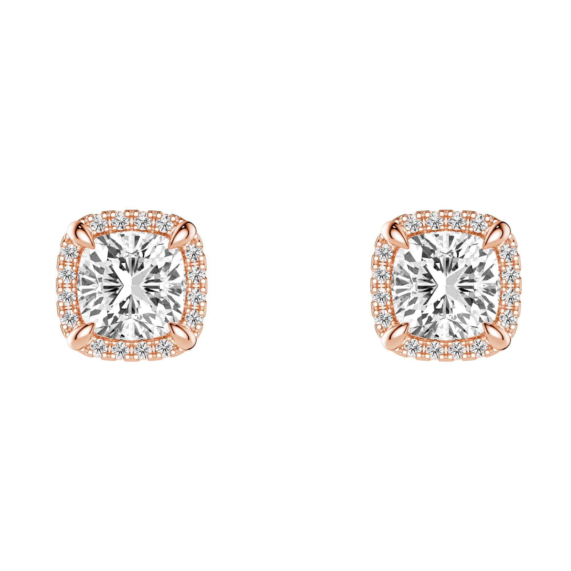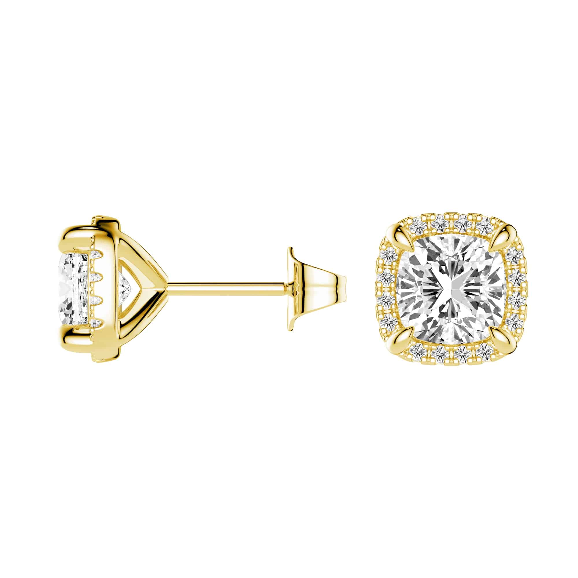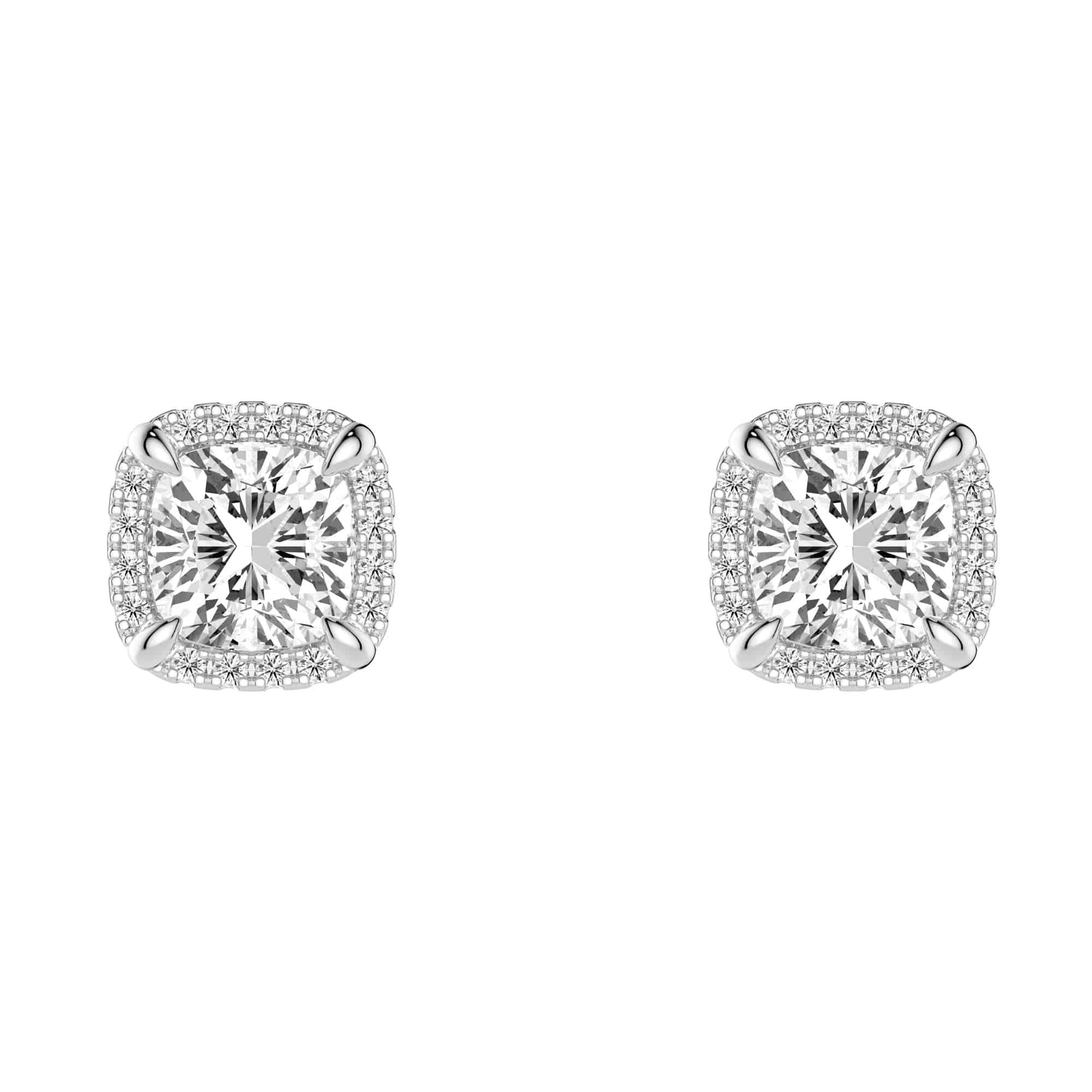 Cushion Cut Moissanite Shadow Halo Stud Earrings
