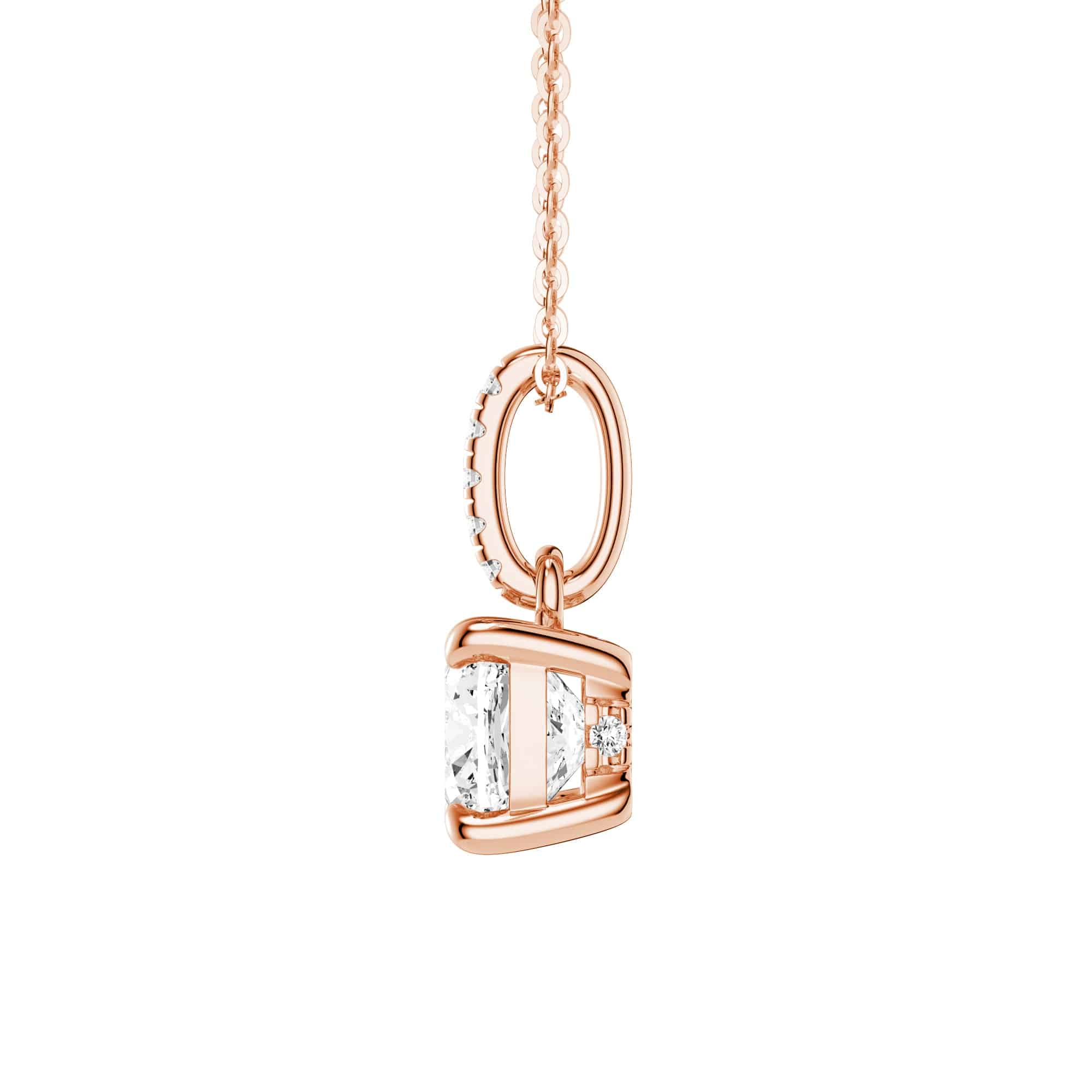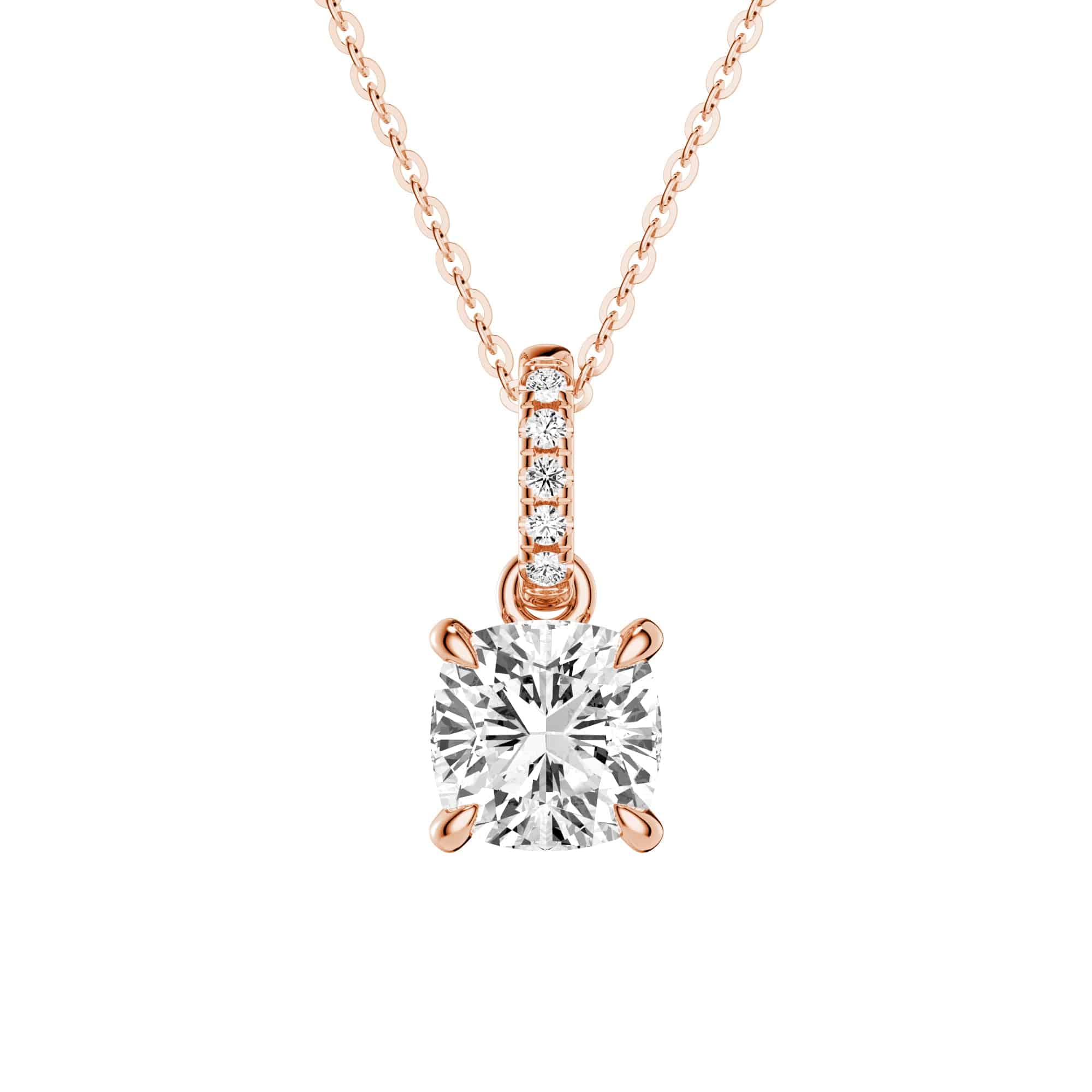 Cushion Cut Moissanite Hidden Halo with Moissanite Bail Fashion Pendant Necklace