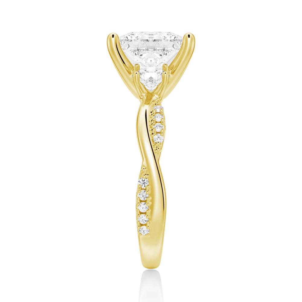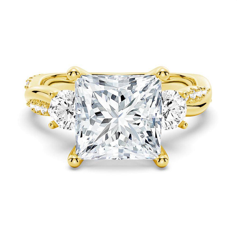Twisted Band Princess Cut Three Stone Moissanite Engagement Ring