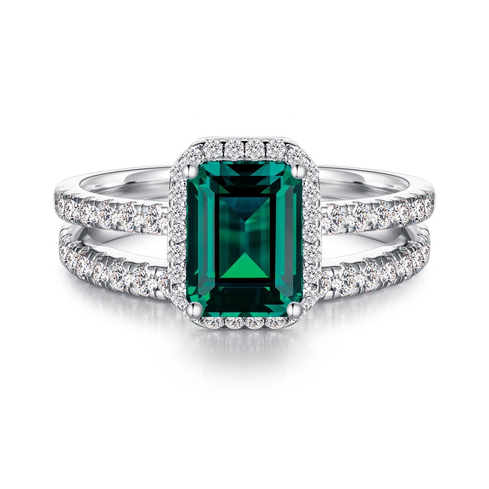 2 CT. Lab Grown Emerald Ring Bridal Set In Sterling Silver - MSBLUE Jewelry
