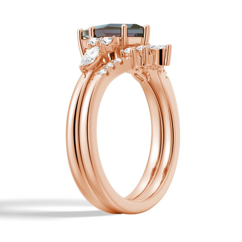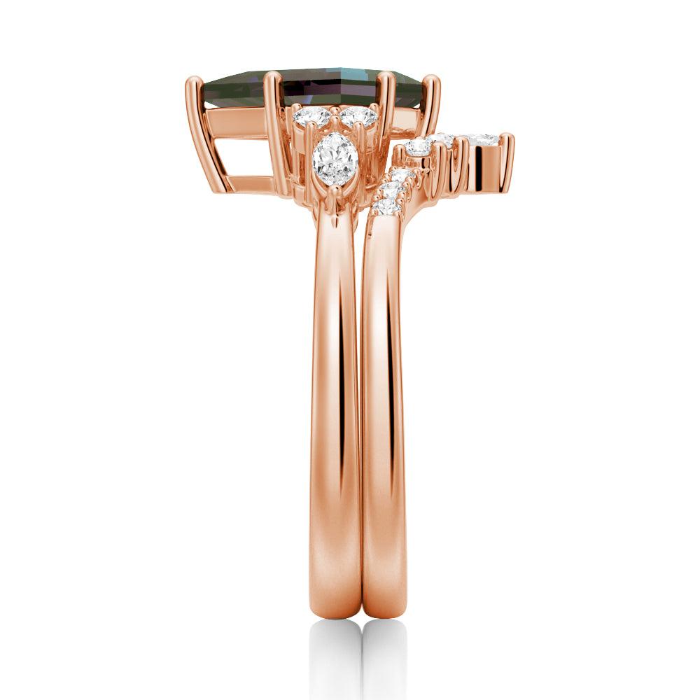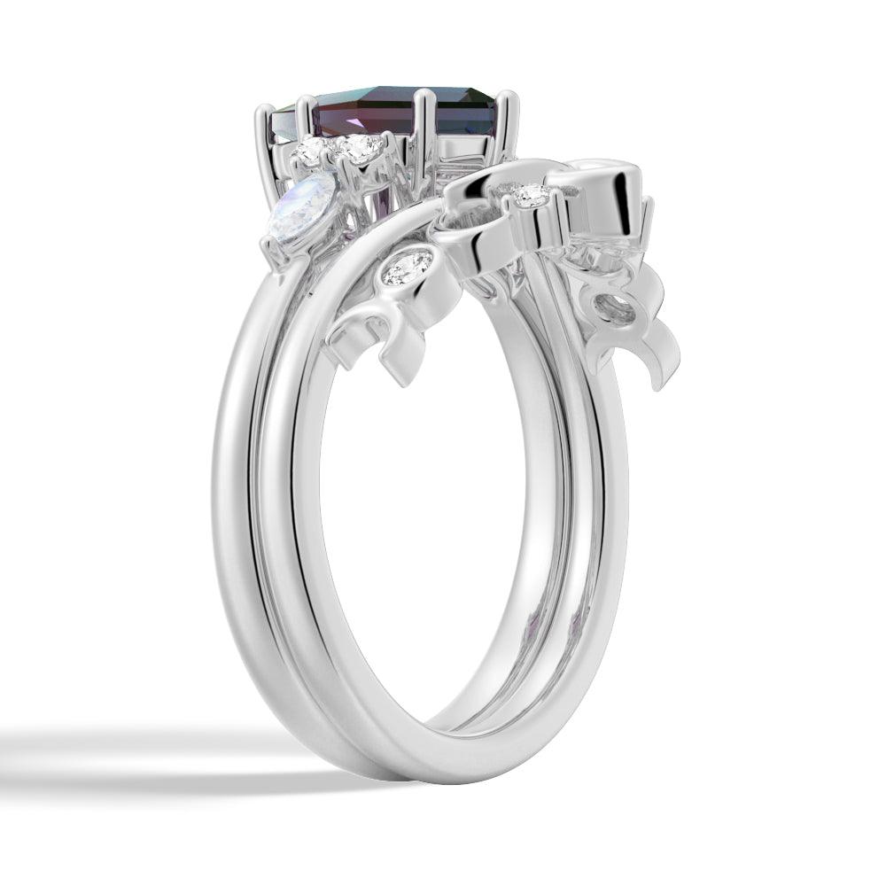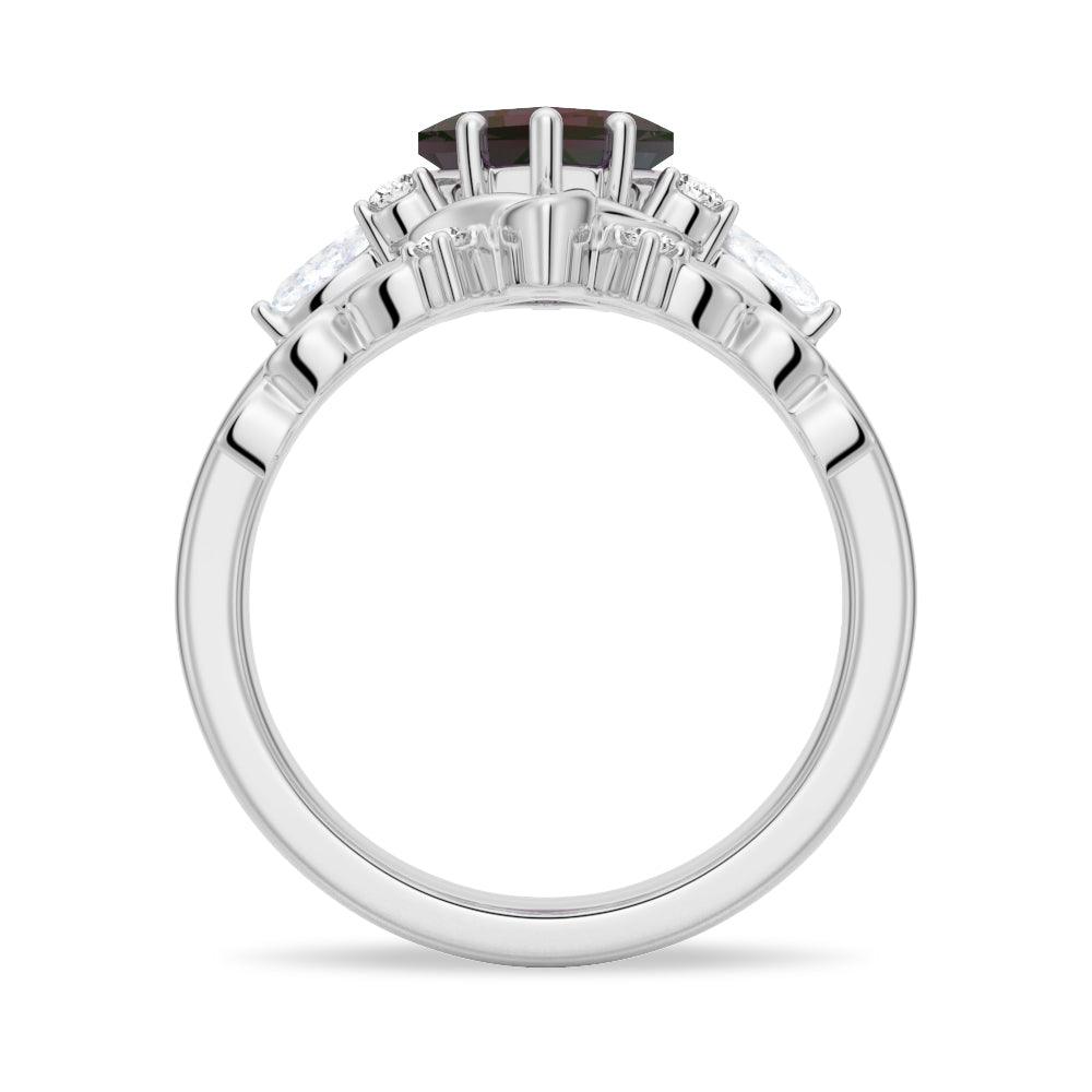2 CT. Art Deco Kite Cut Alexandrite Engagement Ring Set With Moissanite Accents - MSBLUE Jewelry