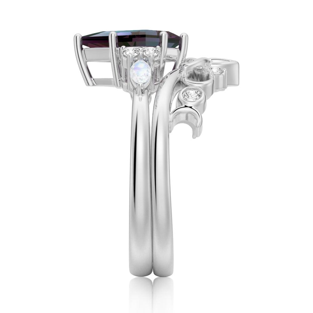 2 CT. Art Deco Unique Kite Cut Alexandrite Engagement Ring Set With Moonstone Accents - MSBLUE Jewelry