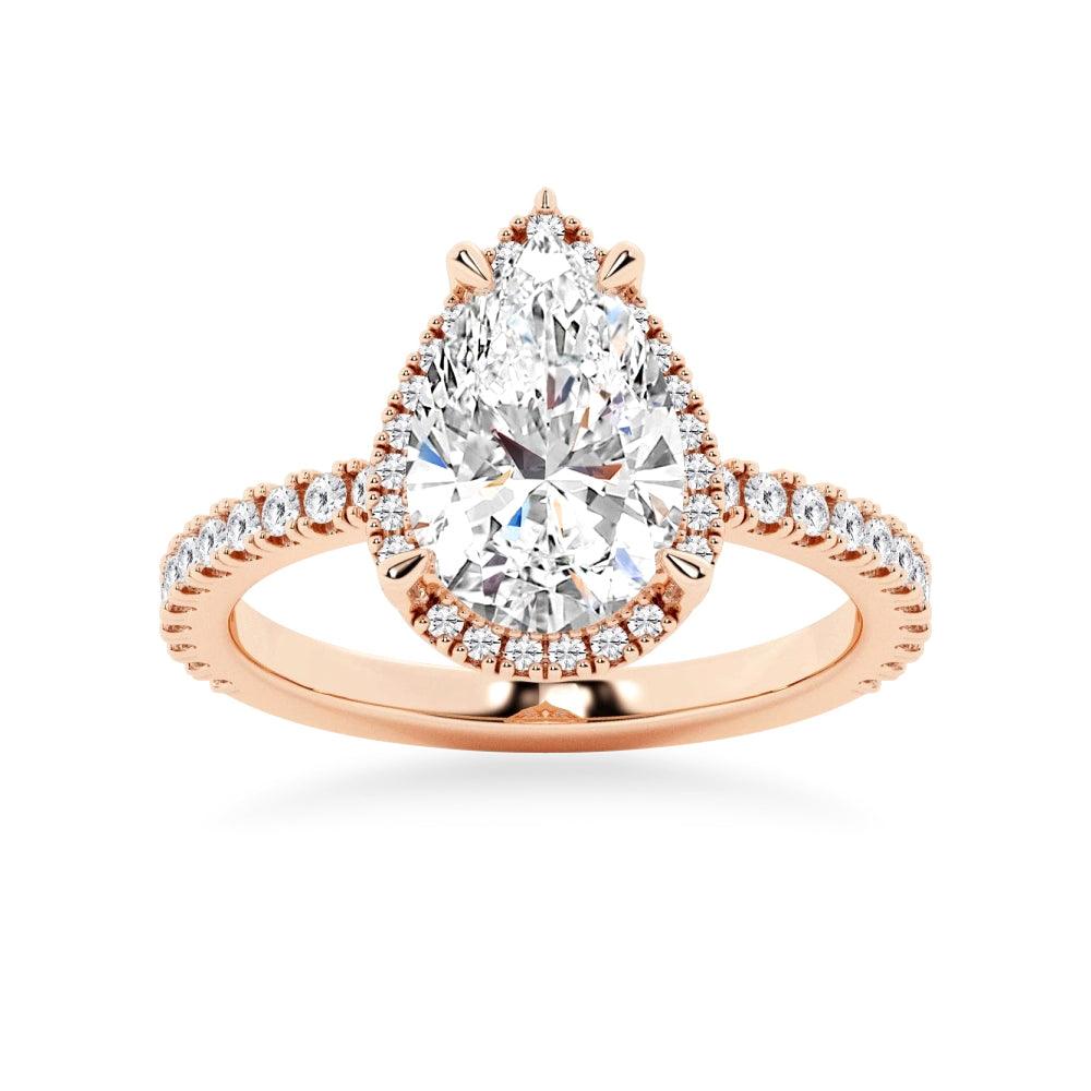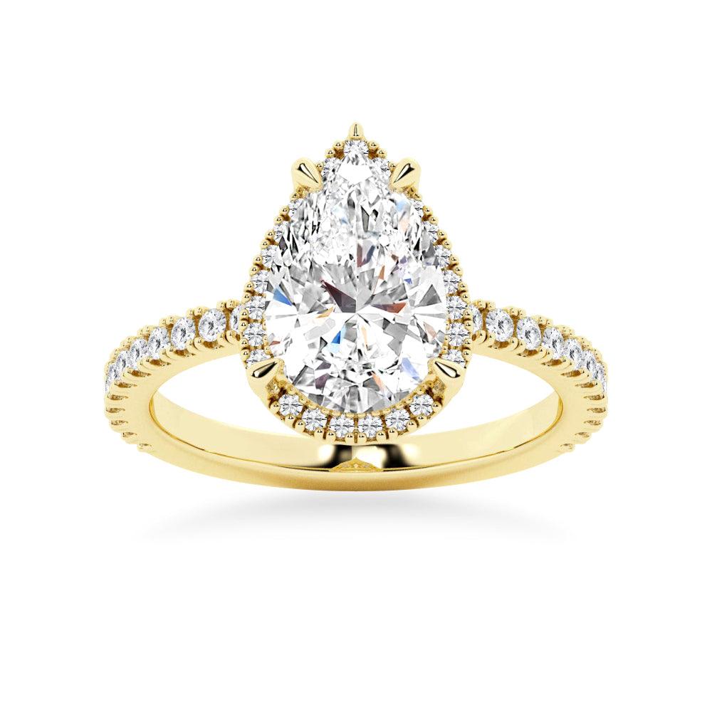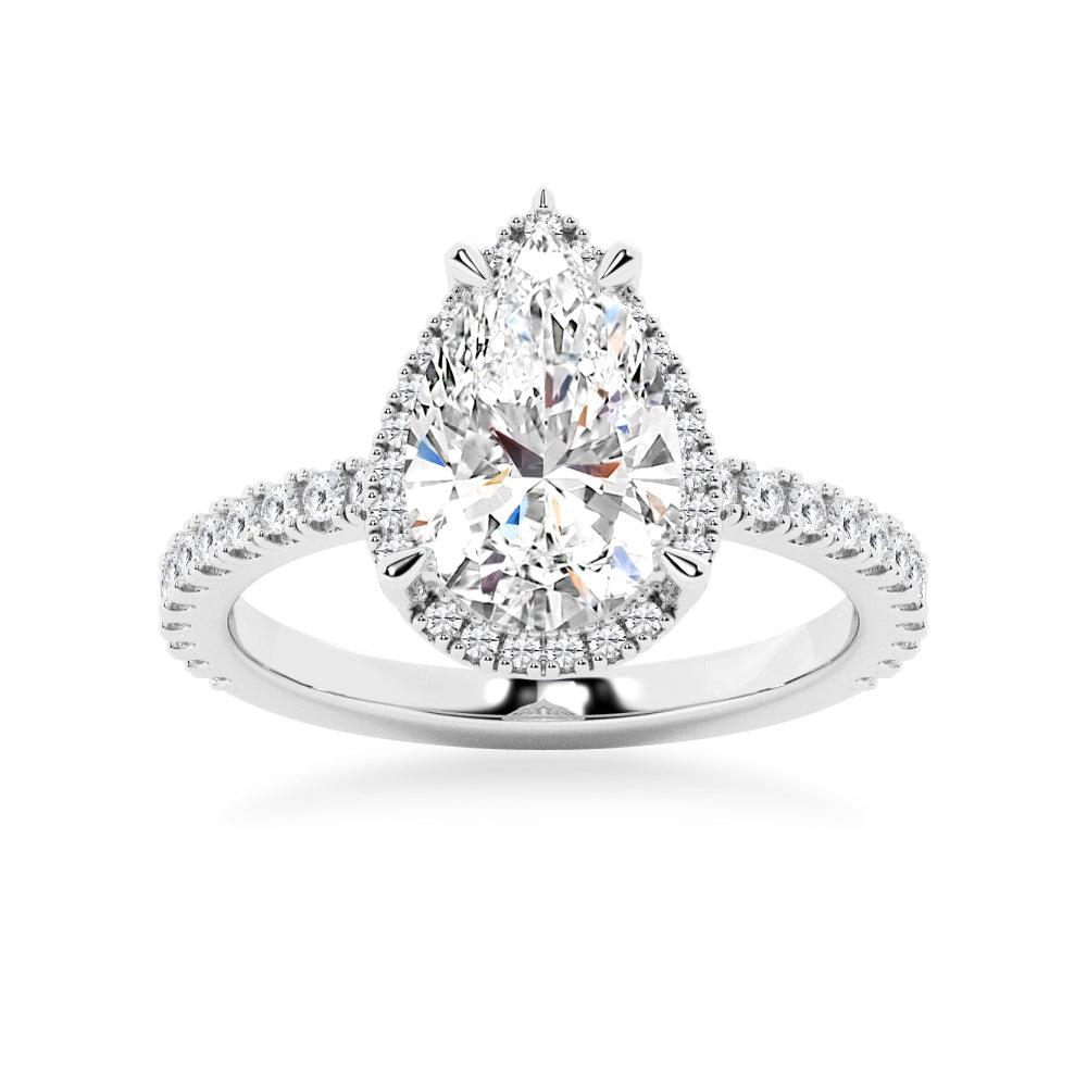 Half Eternity Pear Shaped Moissanite Bridal Set Halo Engagement Ring with Men's Wedding Band - MSBLUE Jewelry