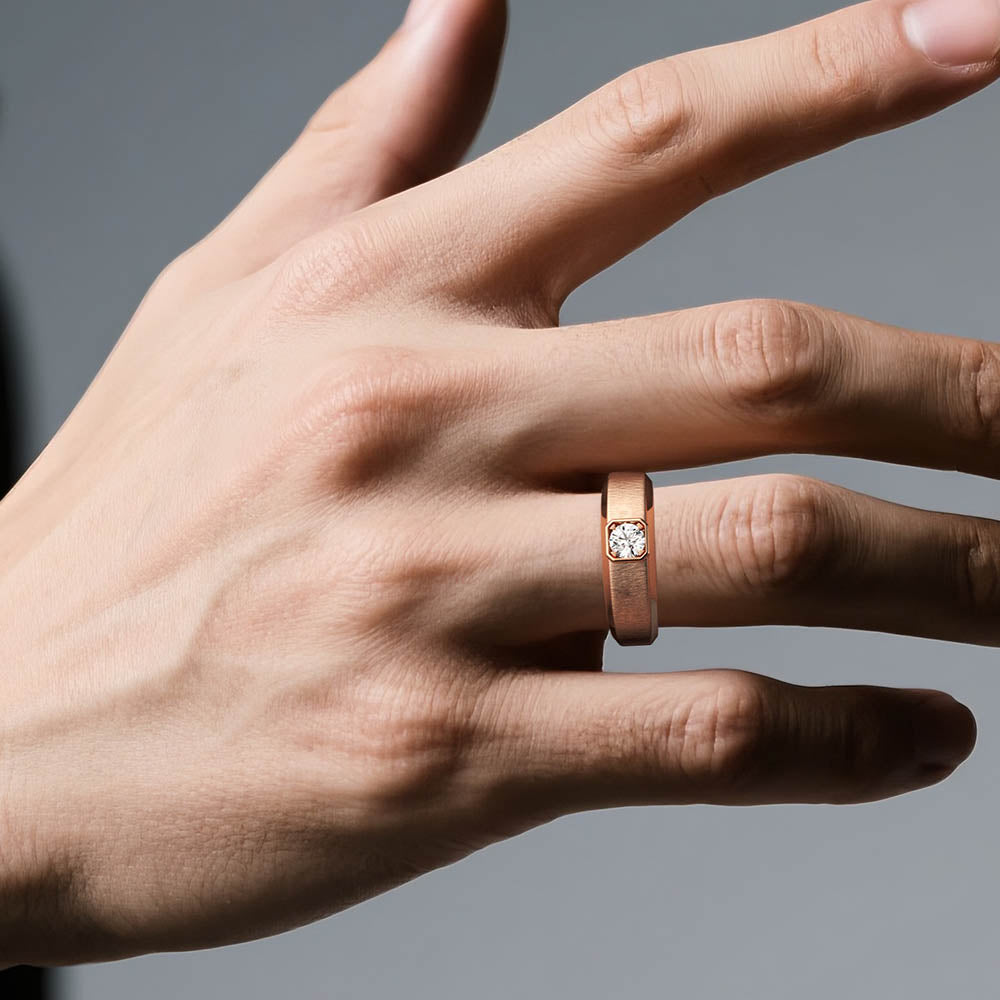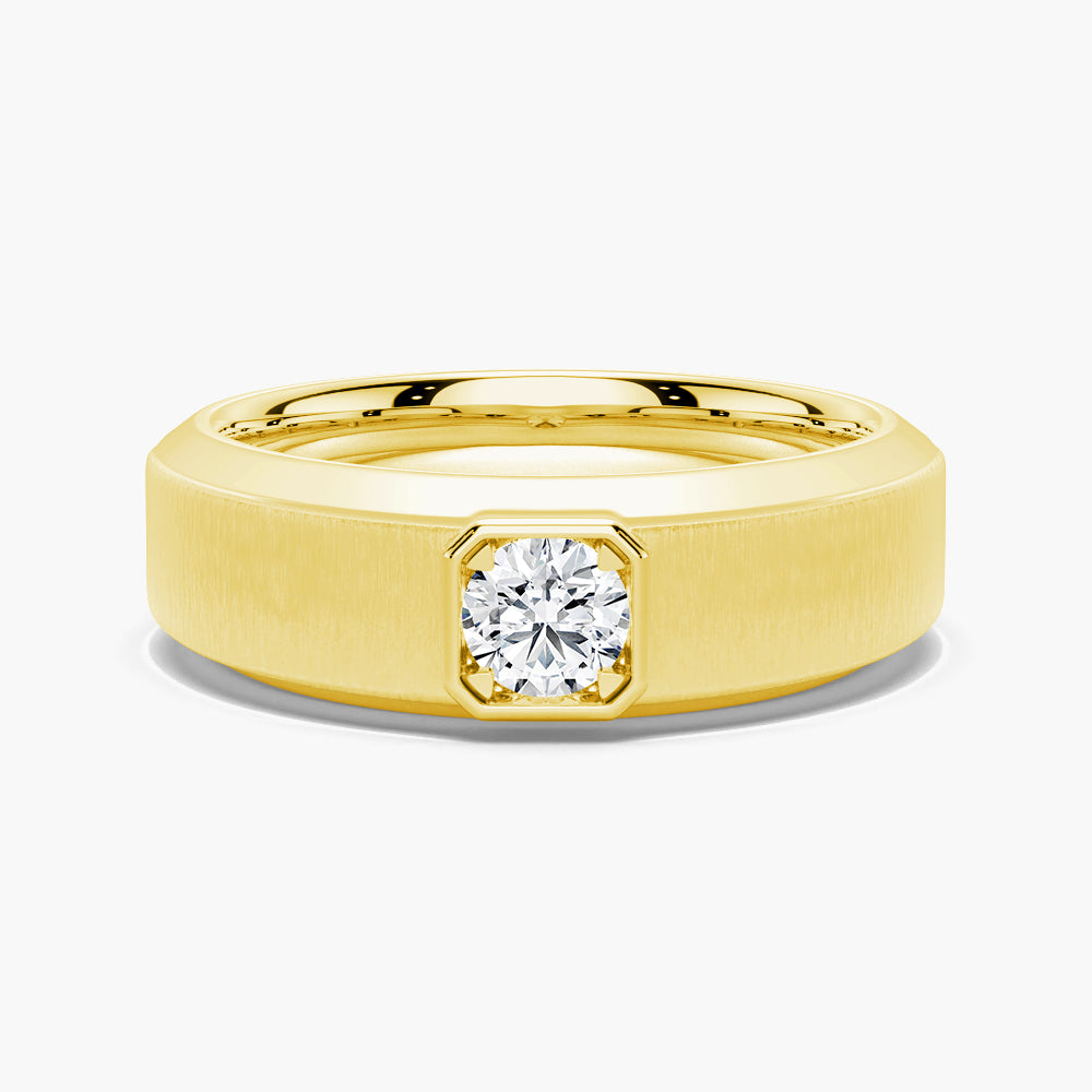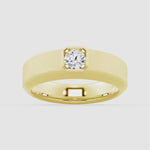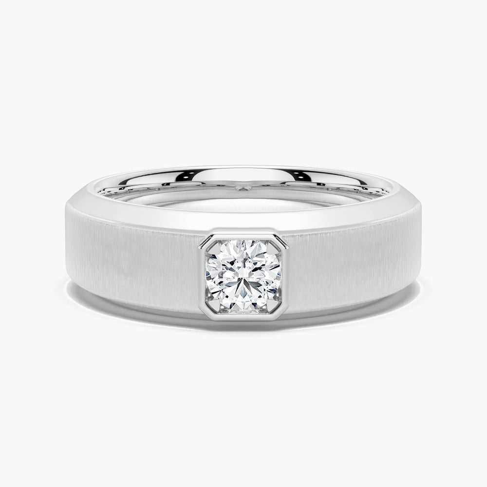 With its beveled edge design and striking solitaire Moissanite gemstone, this band exudes timeless elegance. Available in a range of premium materials, including S925 Silver, 10K Gold, 14K Gold, or Platinum, and your choice of White, Yellow, or Rose Gold, you can customize this band to suit your personal style. Experience exceptional craftsmanship and undeniable charm with this remarkable men's band, a symbol of enduring love and refined taste.