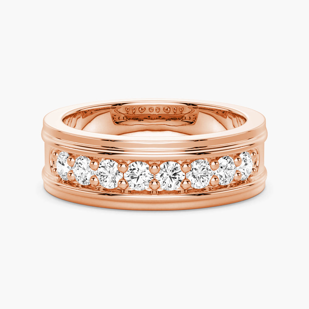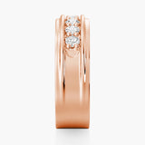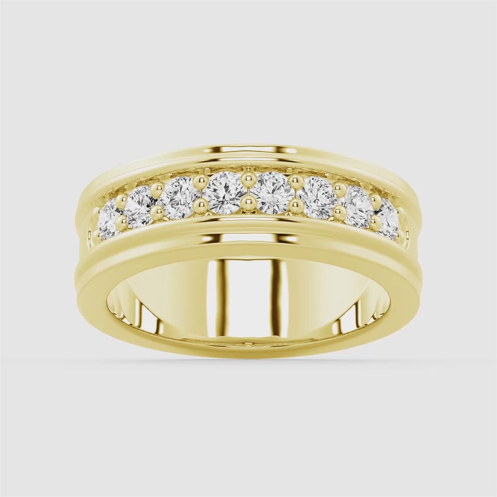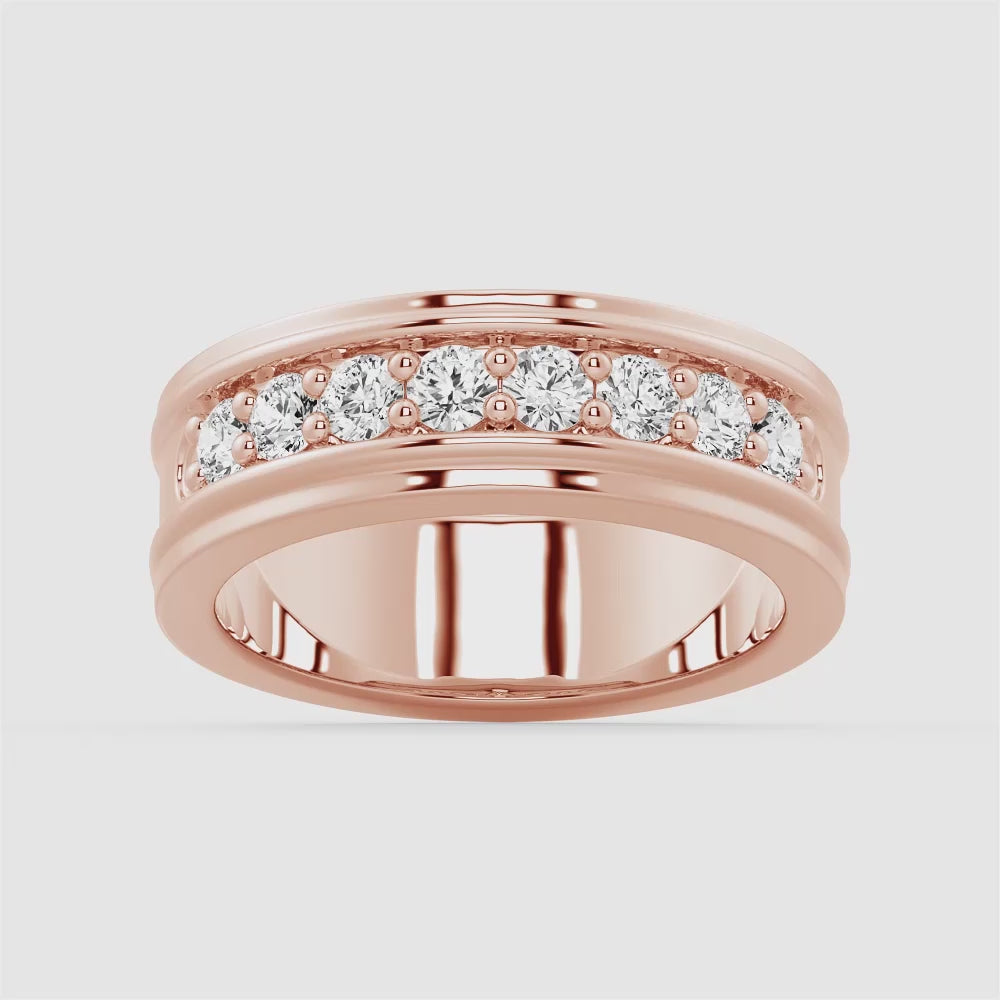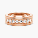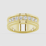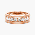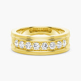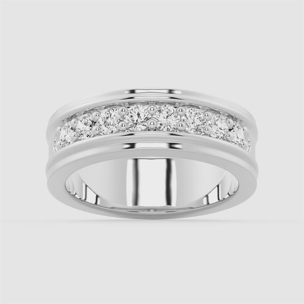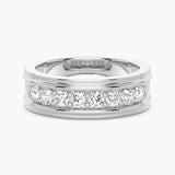 With its channel-set Moissanite gemstones, this band showcases a timeless elegance. Available in a range of premium materials, including S925 Silver, 10K Gold, 14K Gold or Platinum, and your choice of White, Yellow, or Rose Gold, you can customize this band to match your personal style. Experience exceptional craftsmanship and enduring beauty with this remarkable men's wedding band, a symbol of everlasting love and impeccable quality.