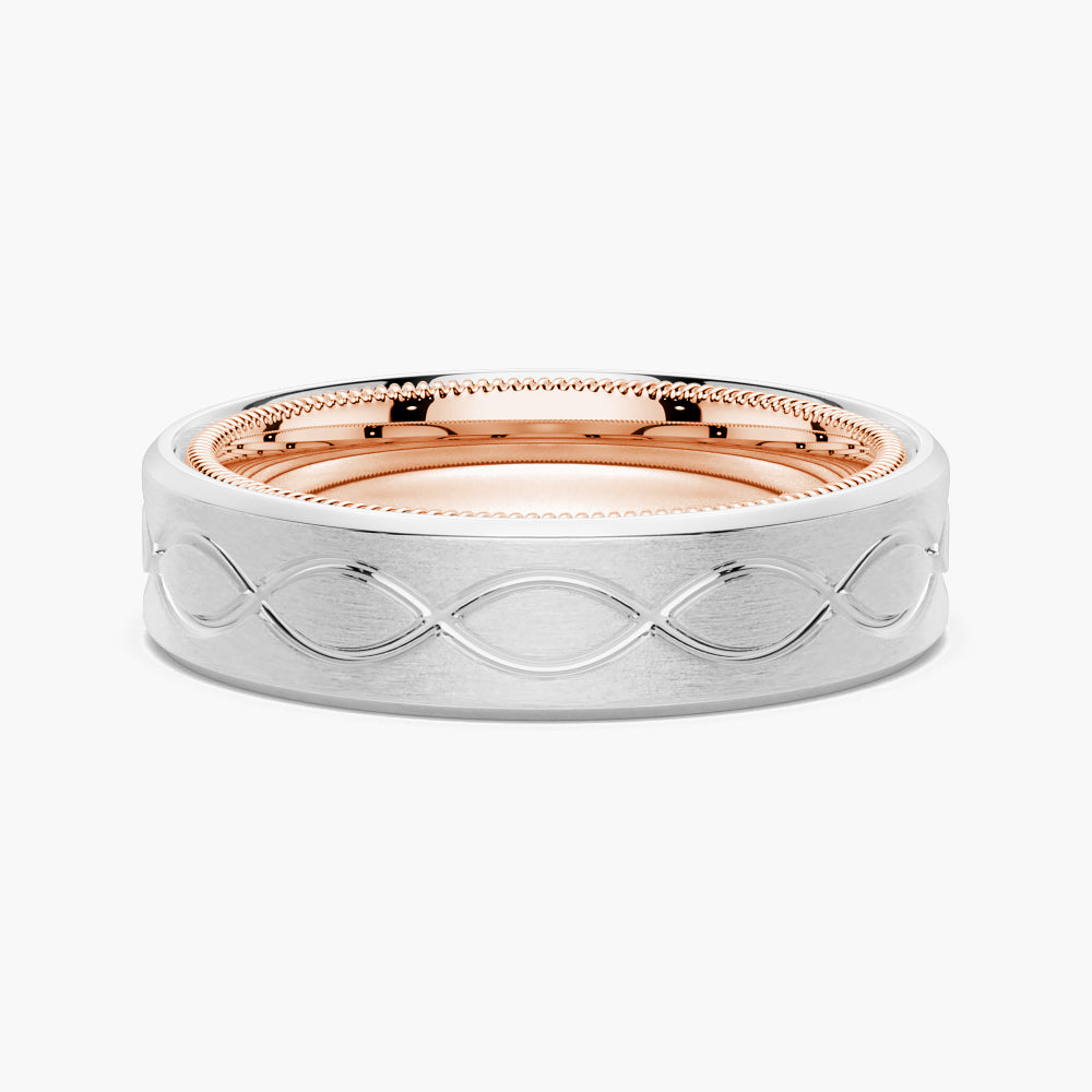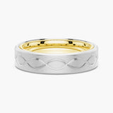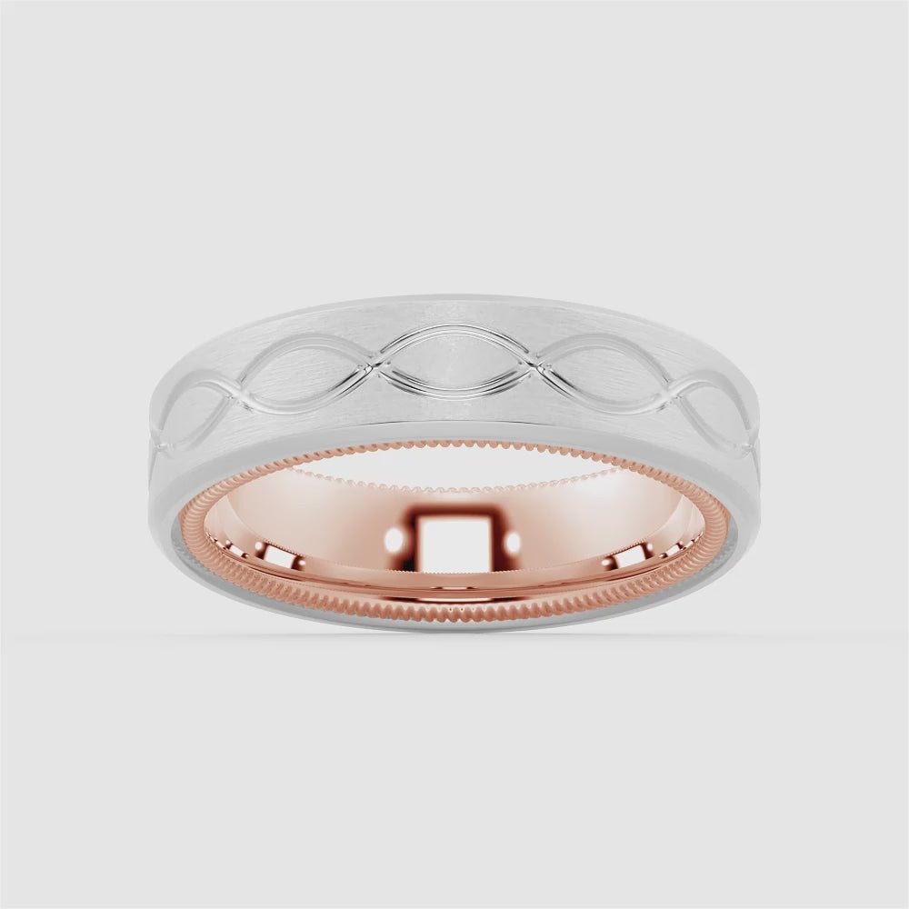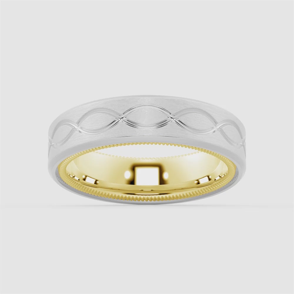 With its unique two-tone design and matte finish, this band showcases a modern and timeless appeal. Available in a range of premium materials, including S925 Silver, 10K Gold, 14K Gold, or Platinum, and your choice of White, Yellow, or Rose Gold, you can personalize this band to reflect your individual taste. The infinity design adds a touch of elegance and symbolism to the piece, representing endless love and unity. Experience exceptional craftsmanship and everlasting style with this remarkable men's band, crafted to make a lasting impression.
