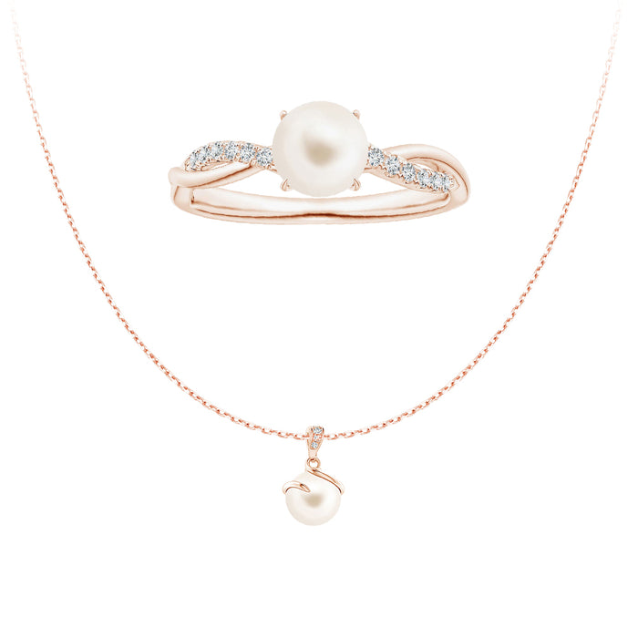 8mm Freshwater Cultured Pearl Twisted Band Shank Ring with Moissanite Pavé