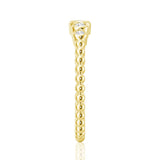 The Beaded Lab Grown Diamond 5-Stone Promise Ring is a captivating symbol of love’s enduring journey. With five brilliant lab-grown diamonds set in a beaded band, each stone represents a significant milestone or cherished moment in your relationship. The intricate beaded detailing adds texture and dimension, enhancing the timeless beauty of the diamonds and creating a unique, elegant look.