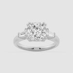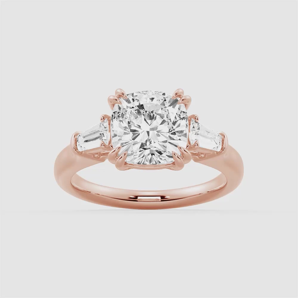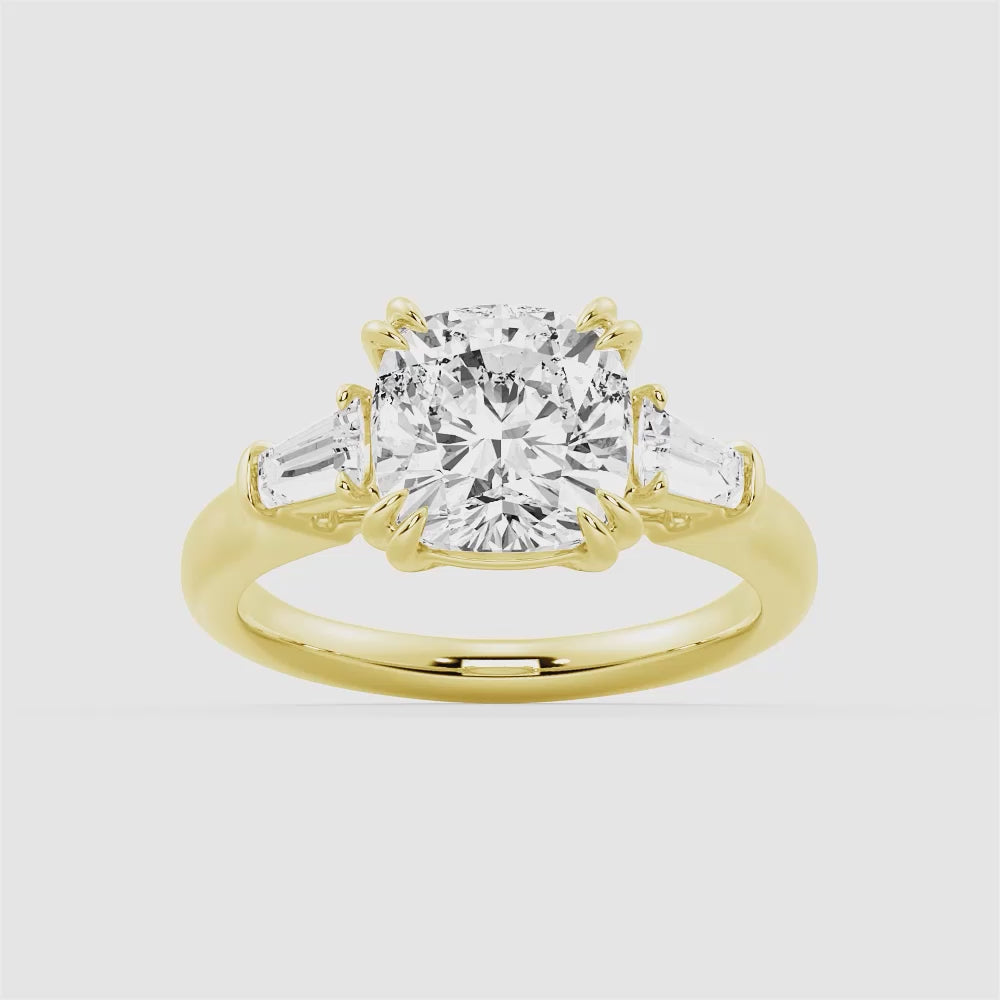 Cushion-Cut Moissanite Engagement Ring with Tapered Baguette Side Stones - MSBLUE Jewelry