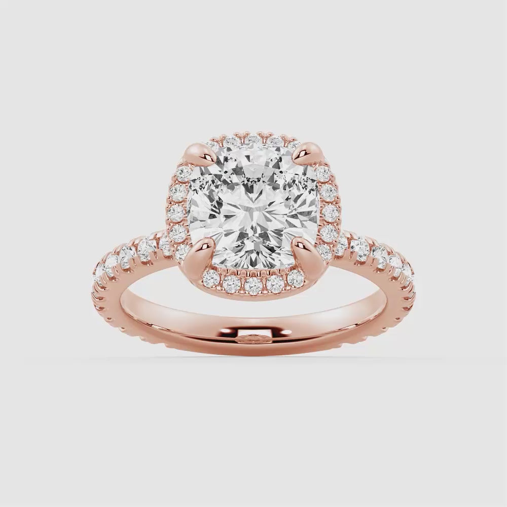 Half Eternity Cushion Cut Moissanite Halo Engagement Ring