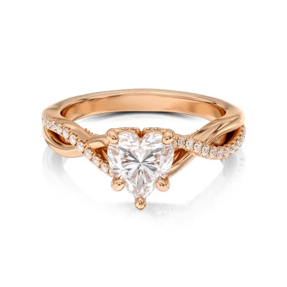 Heart Shaped Moissanite Twisted Band Engagement Ring with Hidden Accents - MSBLUE JEWELRY