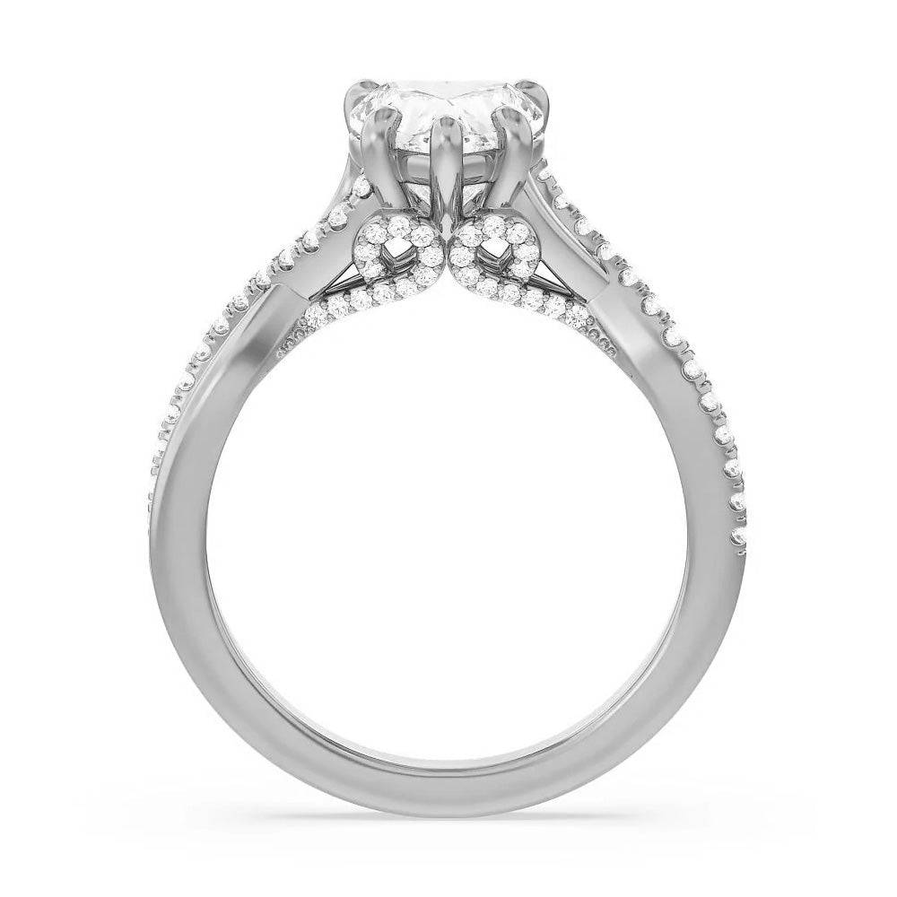 Heart Shaped Moissanite Twisted Band Engagement Ring with Hidden Accents